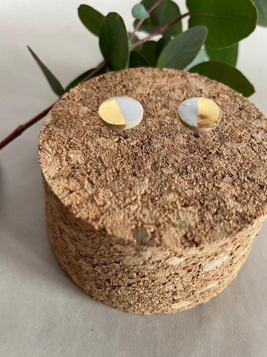 Orecchini Basic gres, smalto bianco mezzaluna oro (medi)