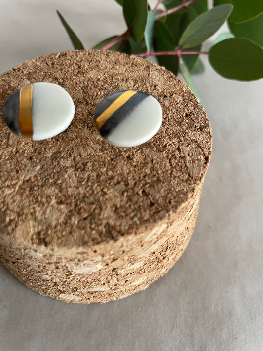 Orecchini basic porcellana “Classic” grigio e oro (grandi)