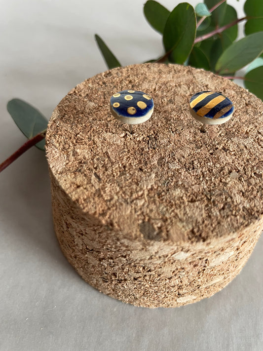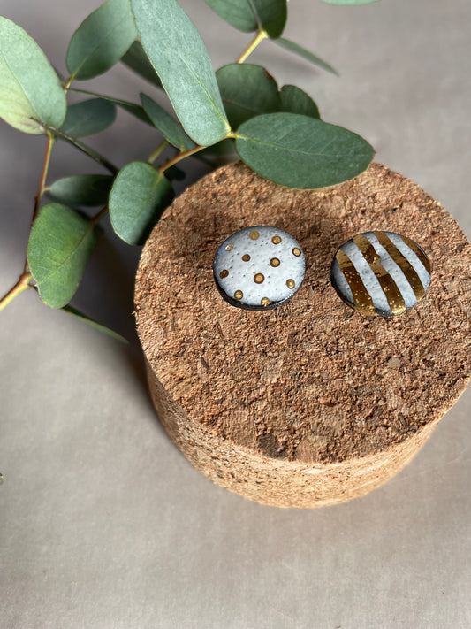 Orecchini “pois e righe” porcellana nera, bianco e oro
