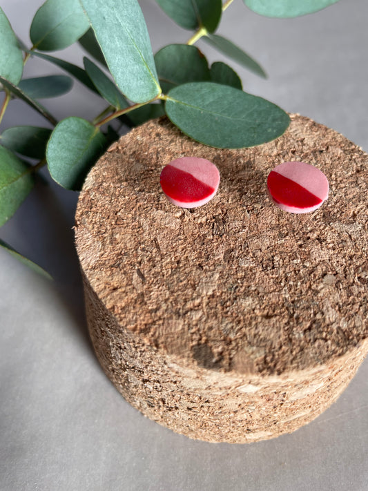 Orecchini Basic in gres, smalto rosa “mezzaluna oro”