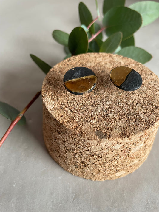Orecchini “mezza luna” porcellana nera, bianco e oro