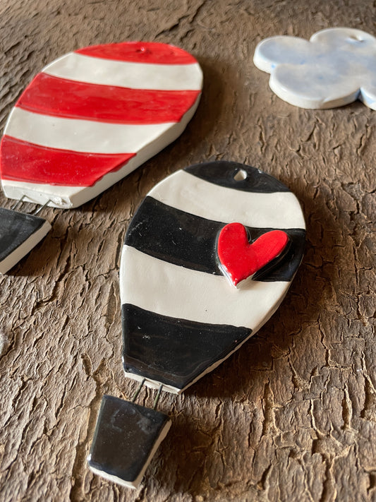 Mongolfiera piccola righe nere e cuore