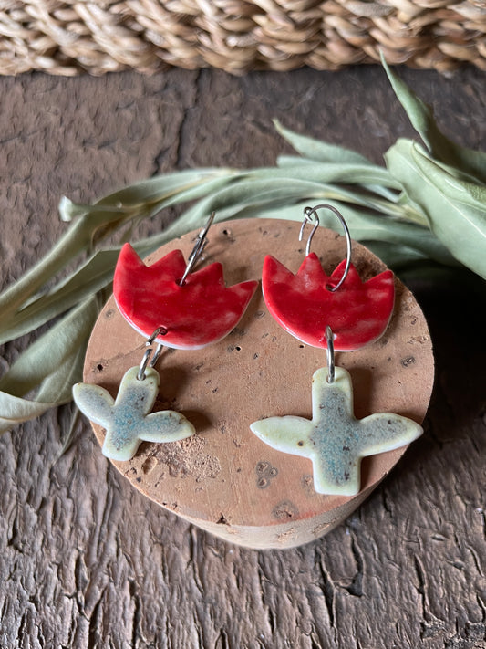 Orecchini tulip in porcellana, in rosso.