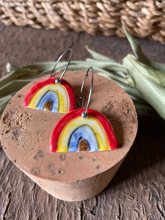 Orecchini pendenti arcobaleno in porcellana, con oro