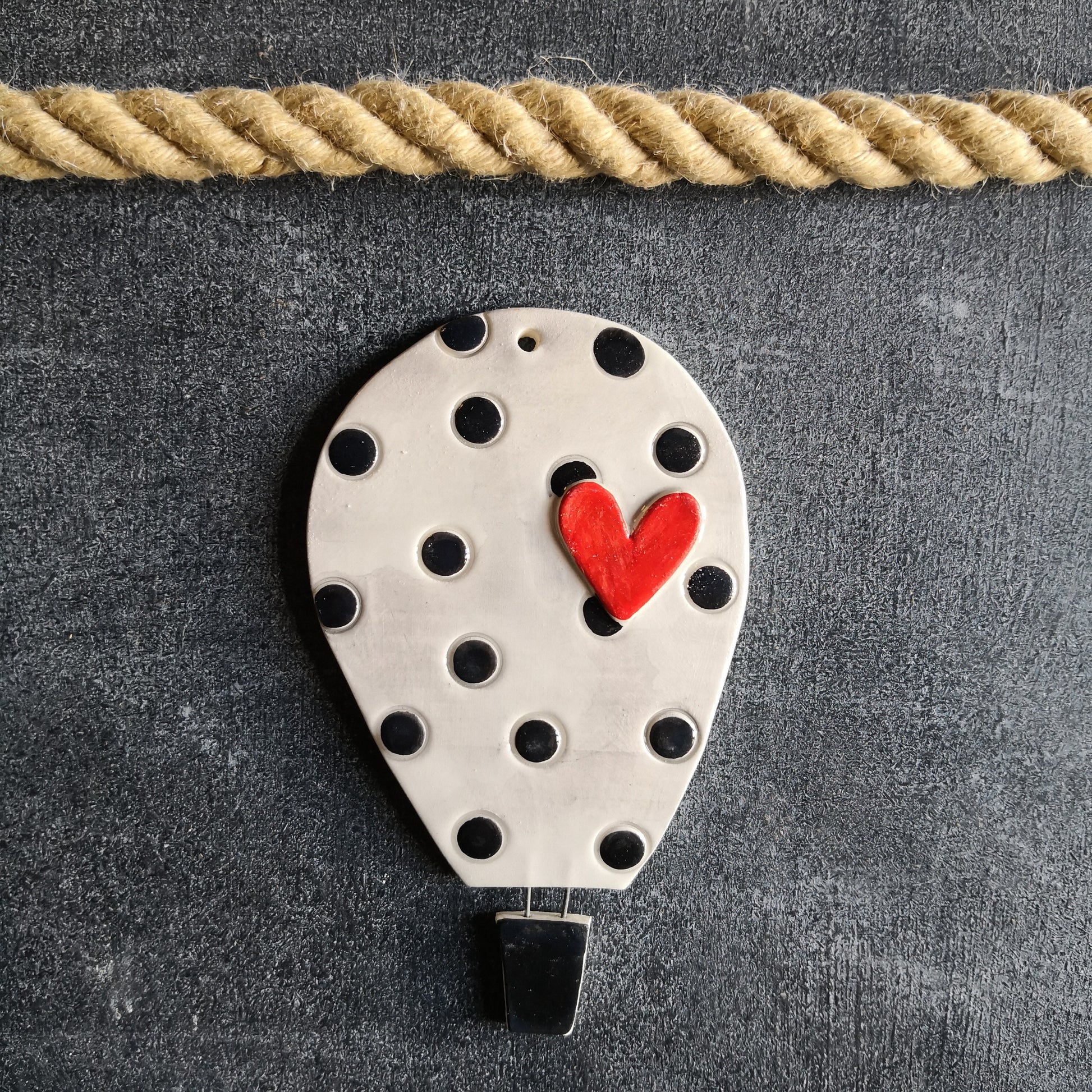 Materiale: terracotta lavorata a lastra, colori a crudo e cristallina trasparente. Dotate di foro per essere appese.