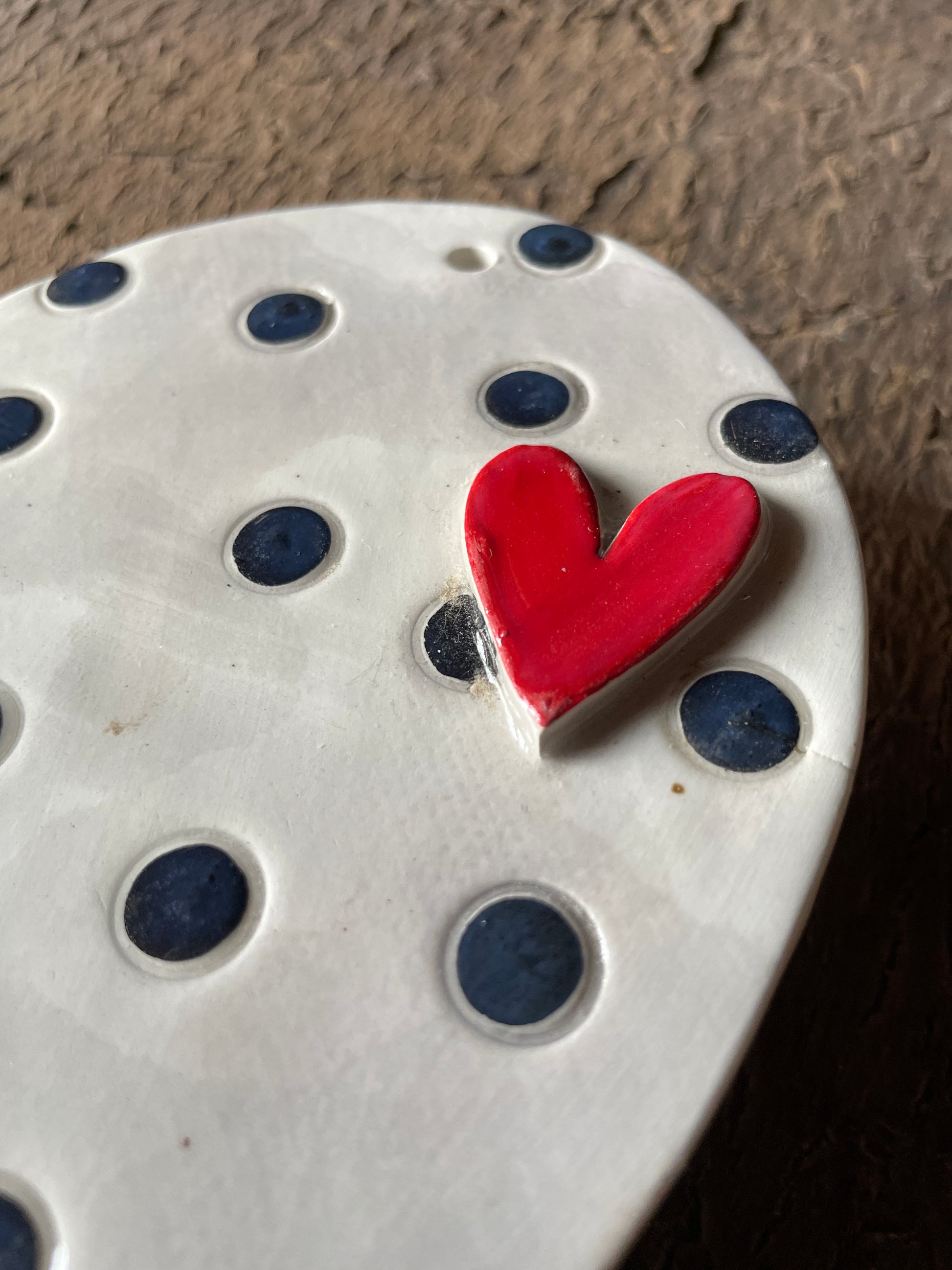 Materiale: terracotta lavorata a lastra, colori a crudo e cristallina trasparente. Dotate di foro per essere appese.