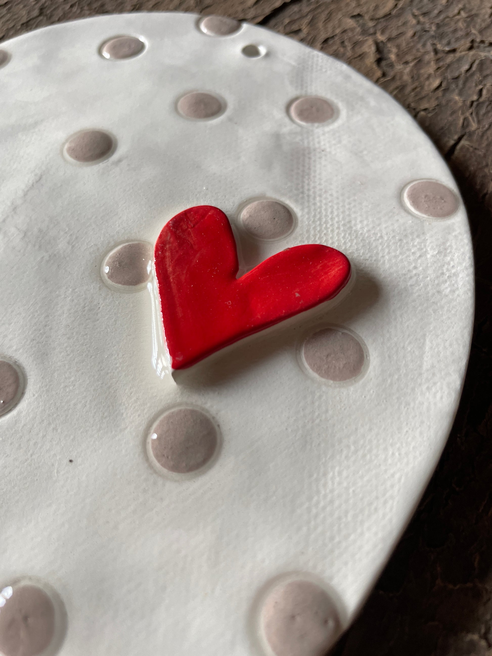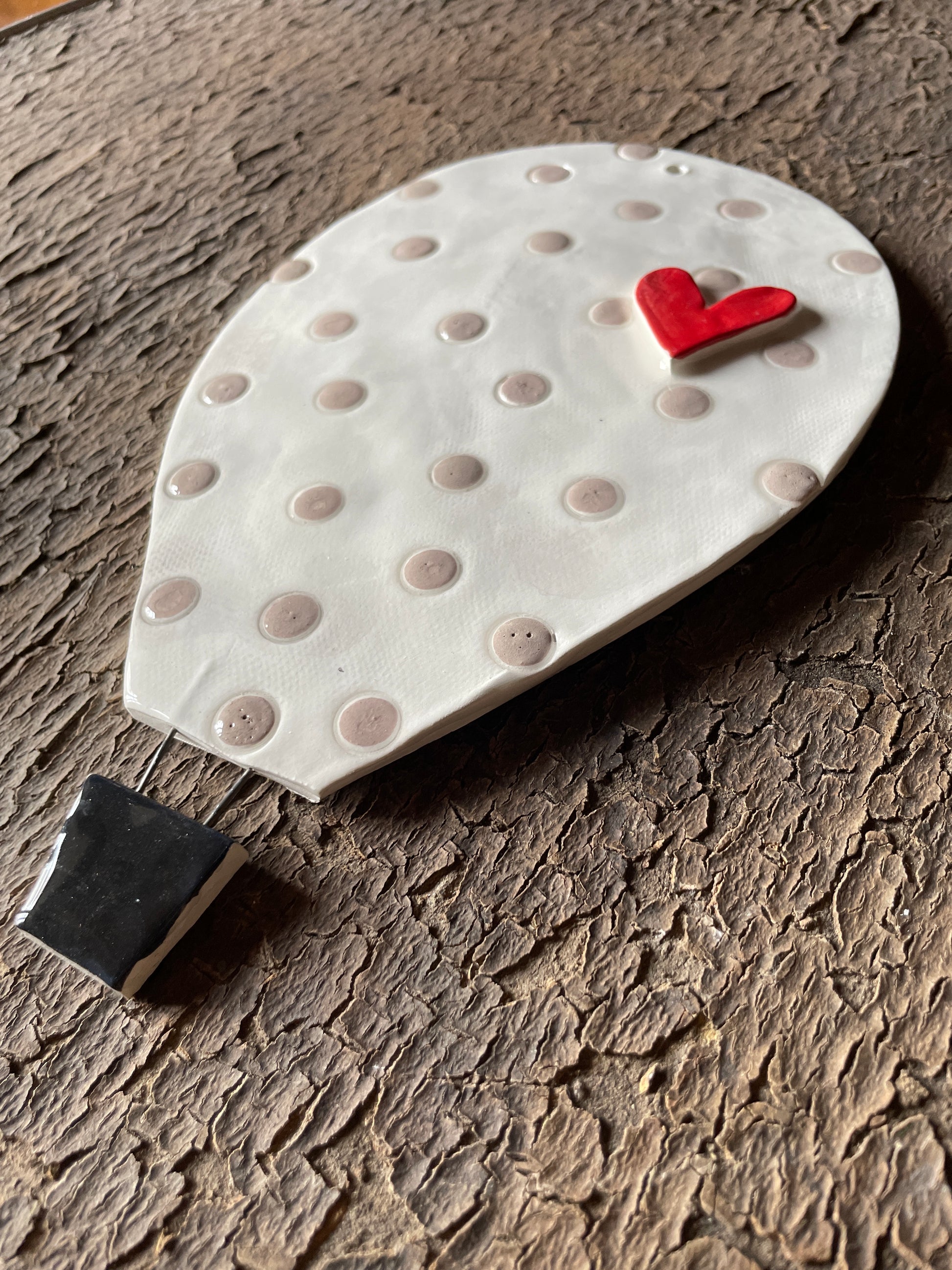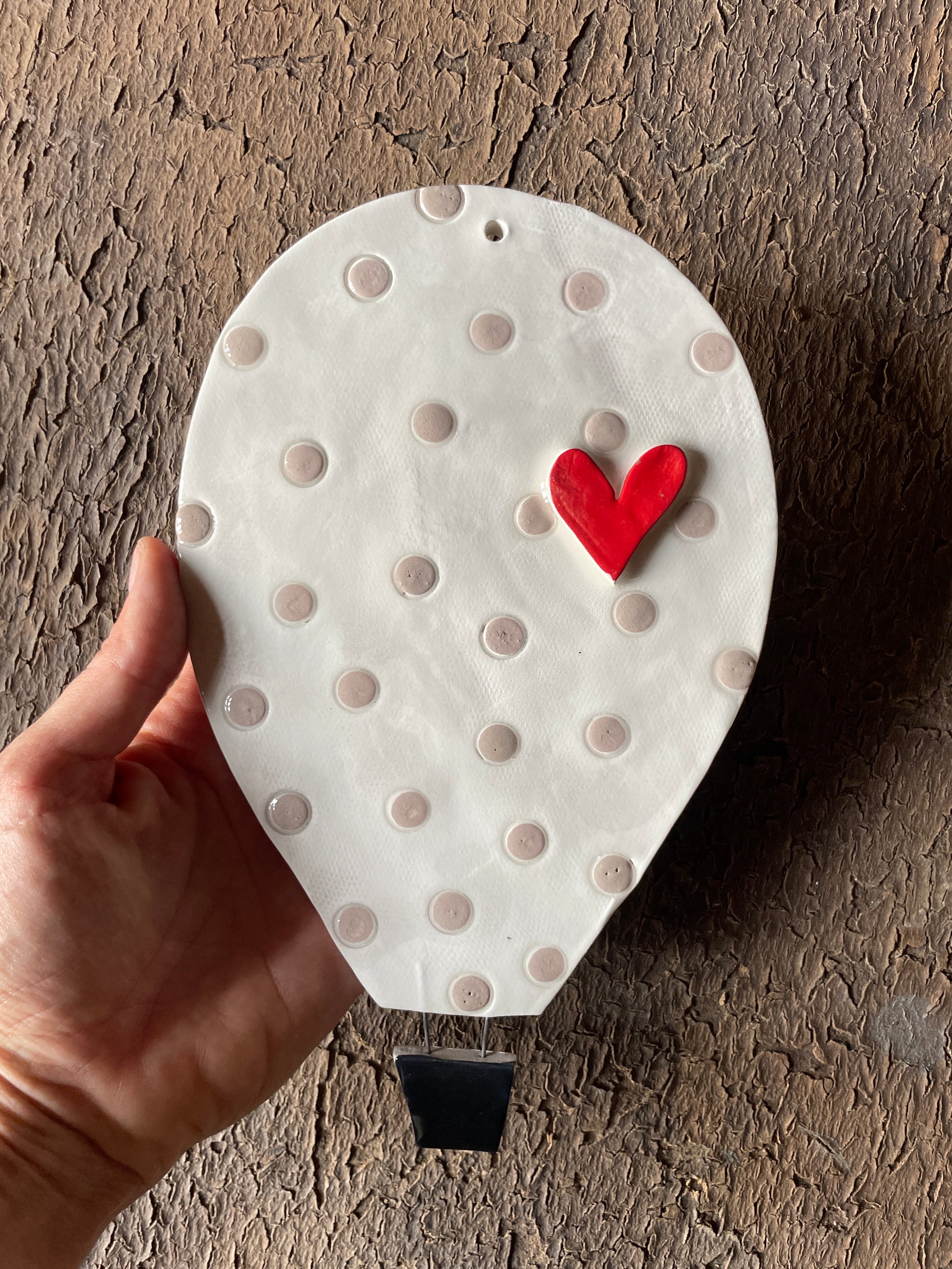Materiale: terracotta lavorata a lastra, colori a crudo e cristallina trasparente. Dotate di foro per essere appese.