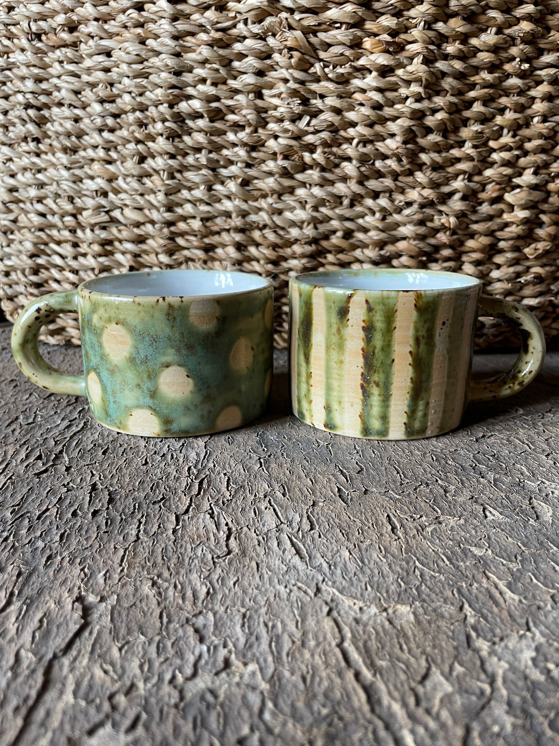 Questi articoli sono realizzati al tornio e rifiniti, poi dipinti, a mano. Dunque ogni tazza è lievemente diversa dalle altre. Gustati questa unicità!
