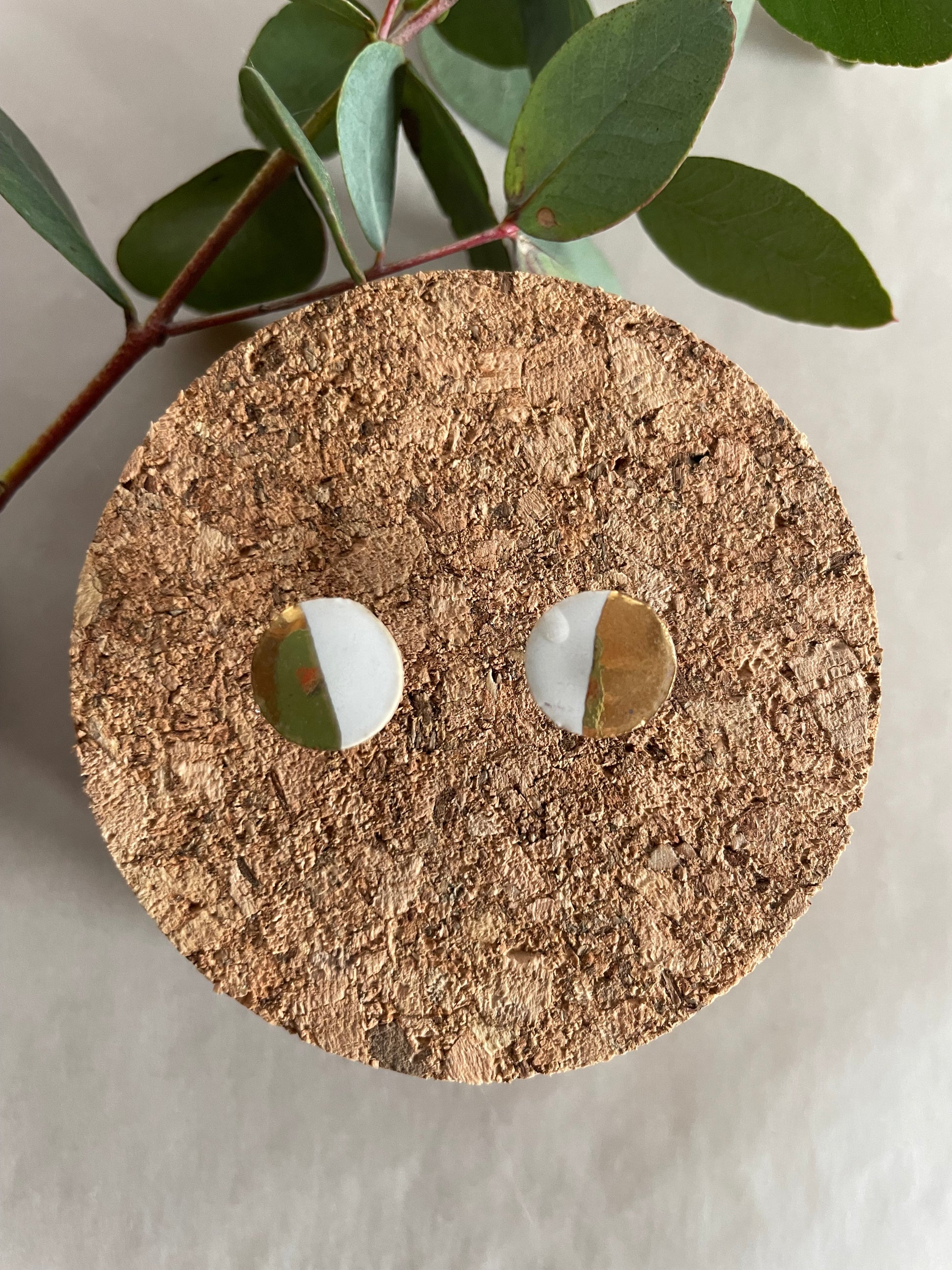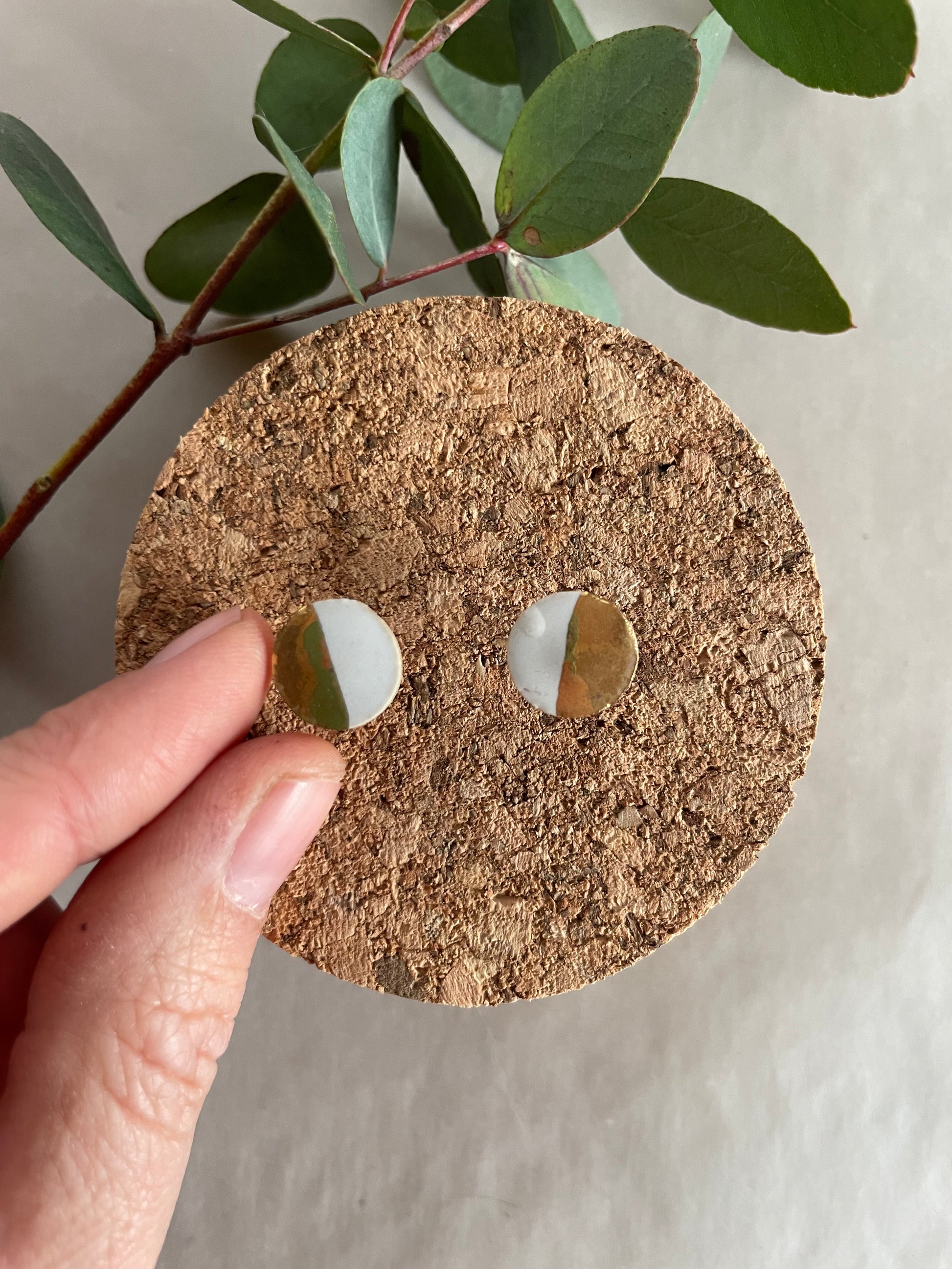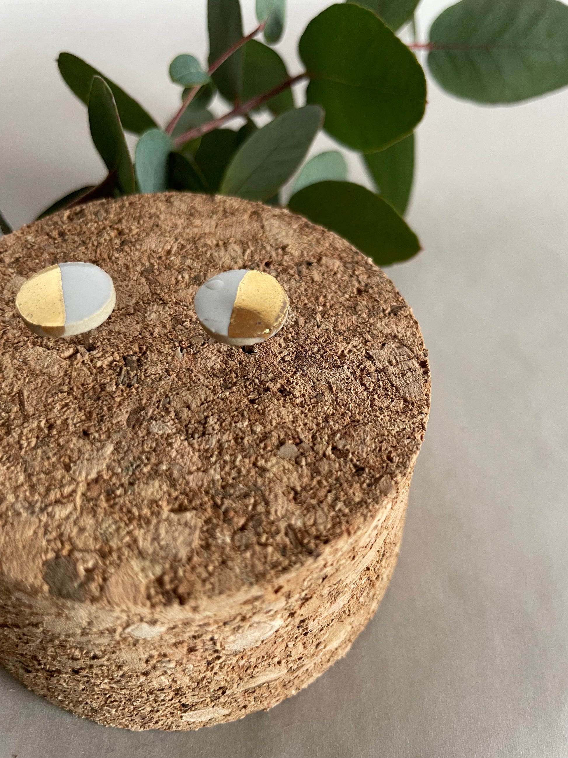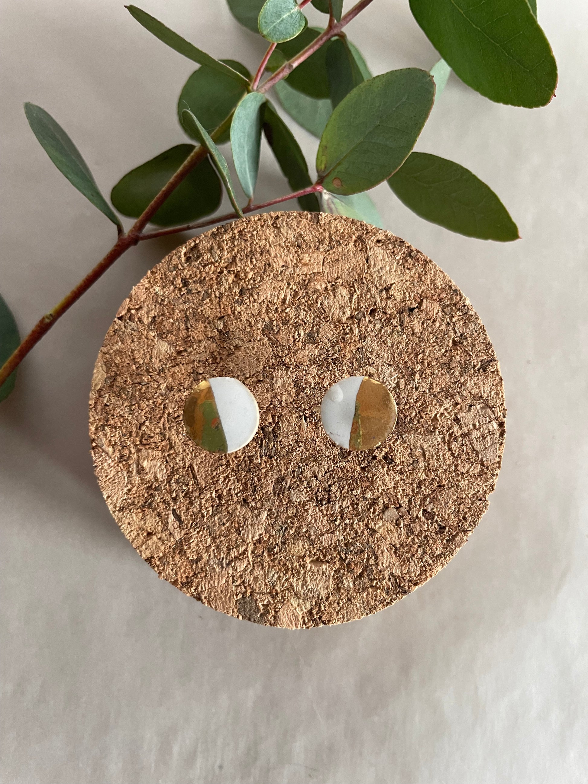 Orecchini Basic gres, smalto bianco mezzaluna oro (medi)