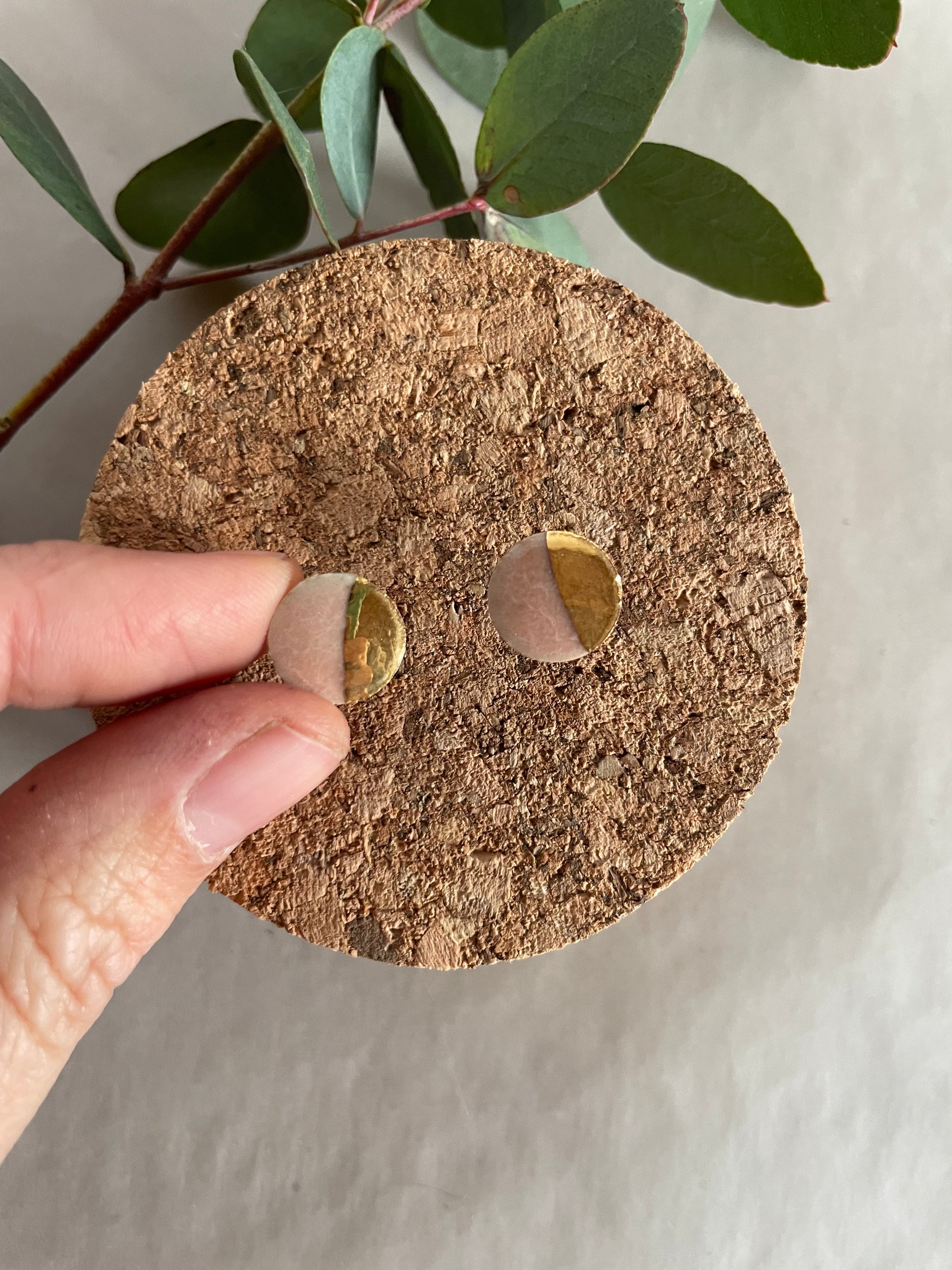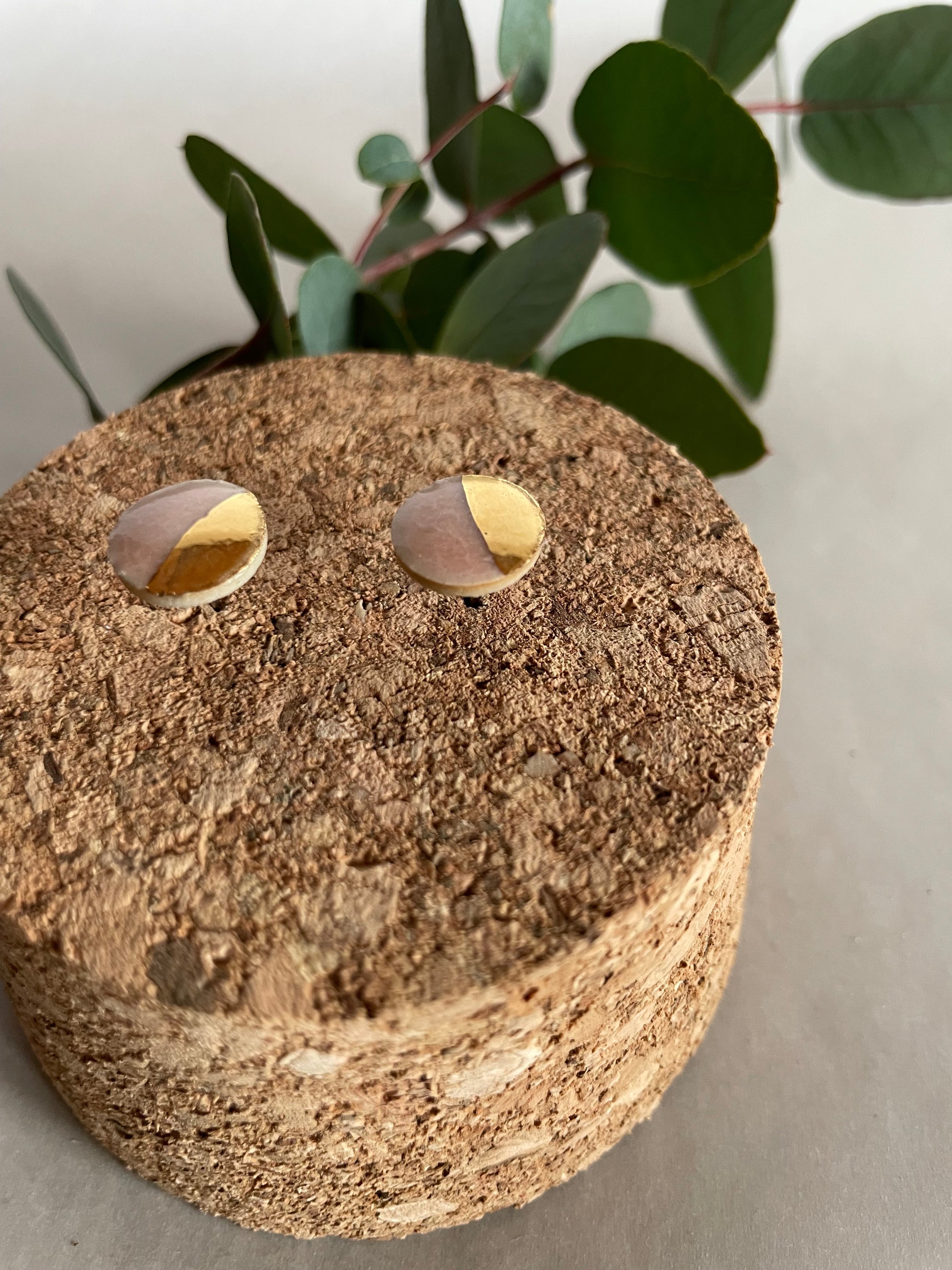 Orecchini Basic in gres, smalto rosa “mezzaluna oro” medi