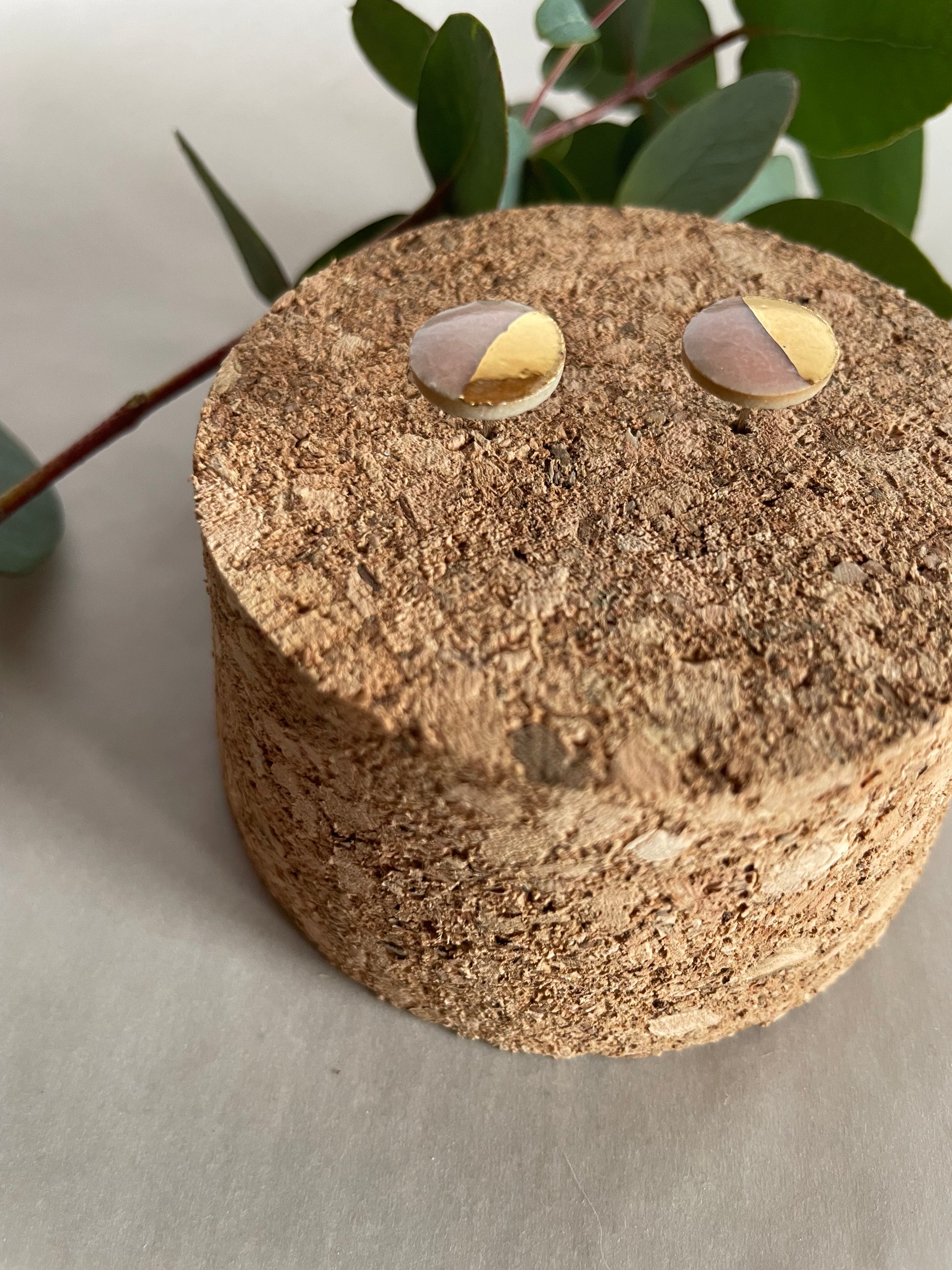 Questi orecchini sono perfetti per chi vuole indossare un gioiello comodo che aggiunge un tocco di luce al proprio look. Sono fatti in gres lavorato a lastra e poi intagliato a mano libera; la finitura è bloccata per mezzo di smalto colore rosa lievemente puntinato, la lavorazione è impreziosita dai decori oro 18K.