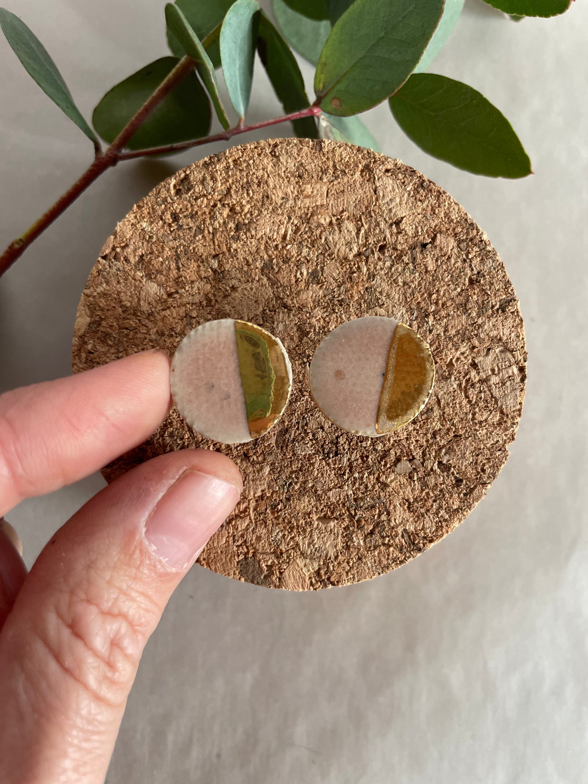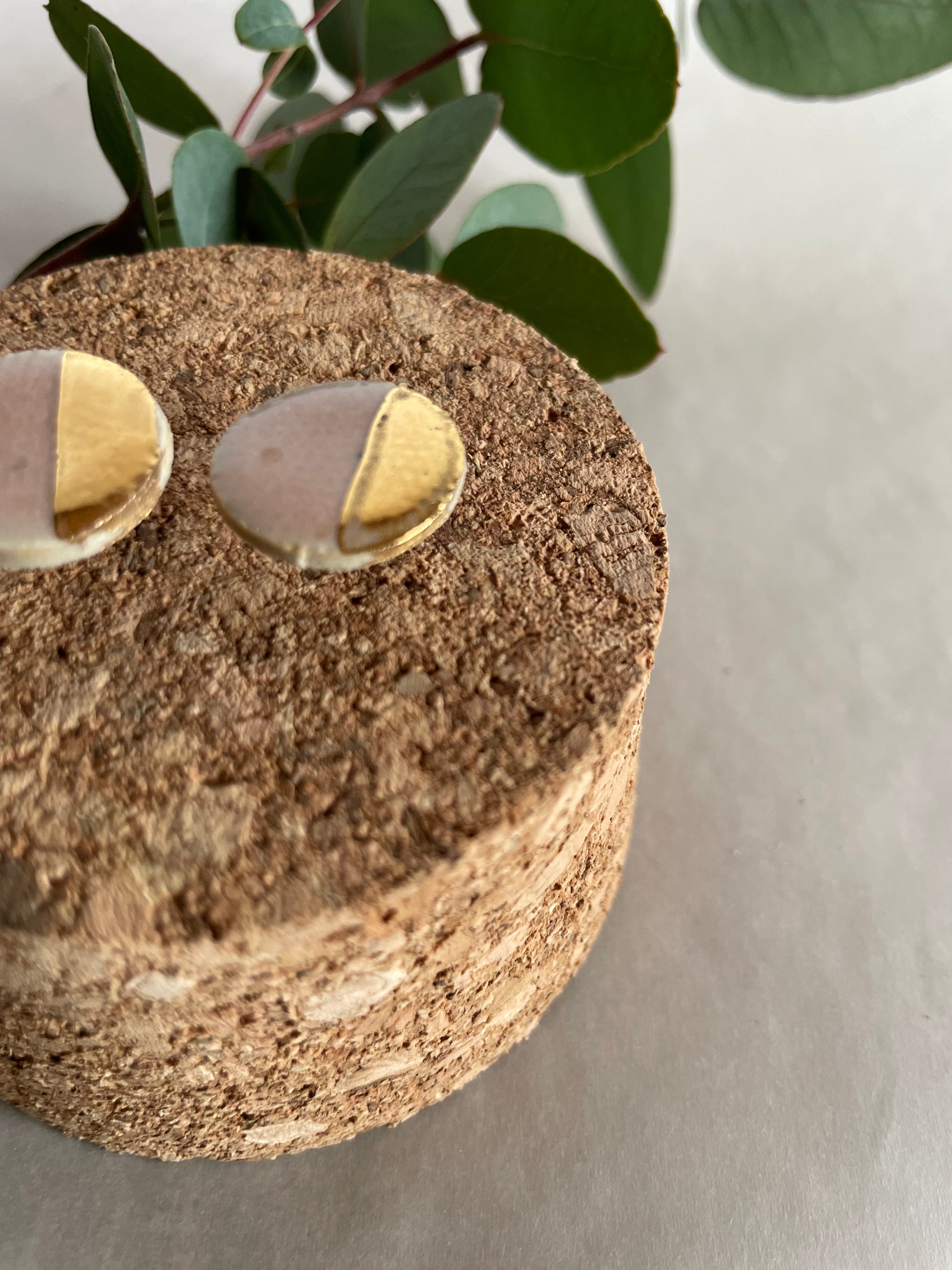 Orecchini Basic in gres, smalto rosa “mezzaluna oro”