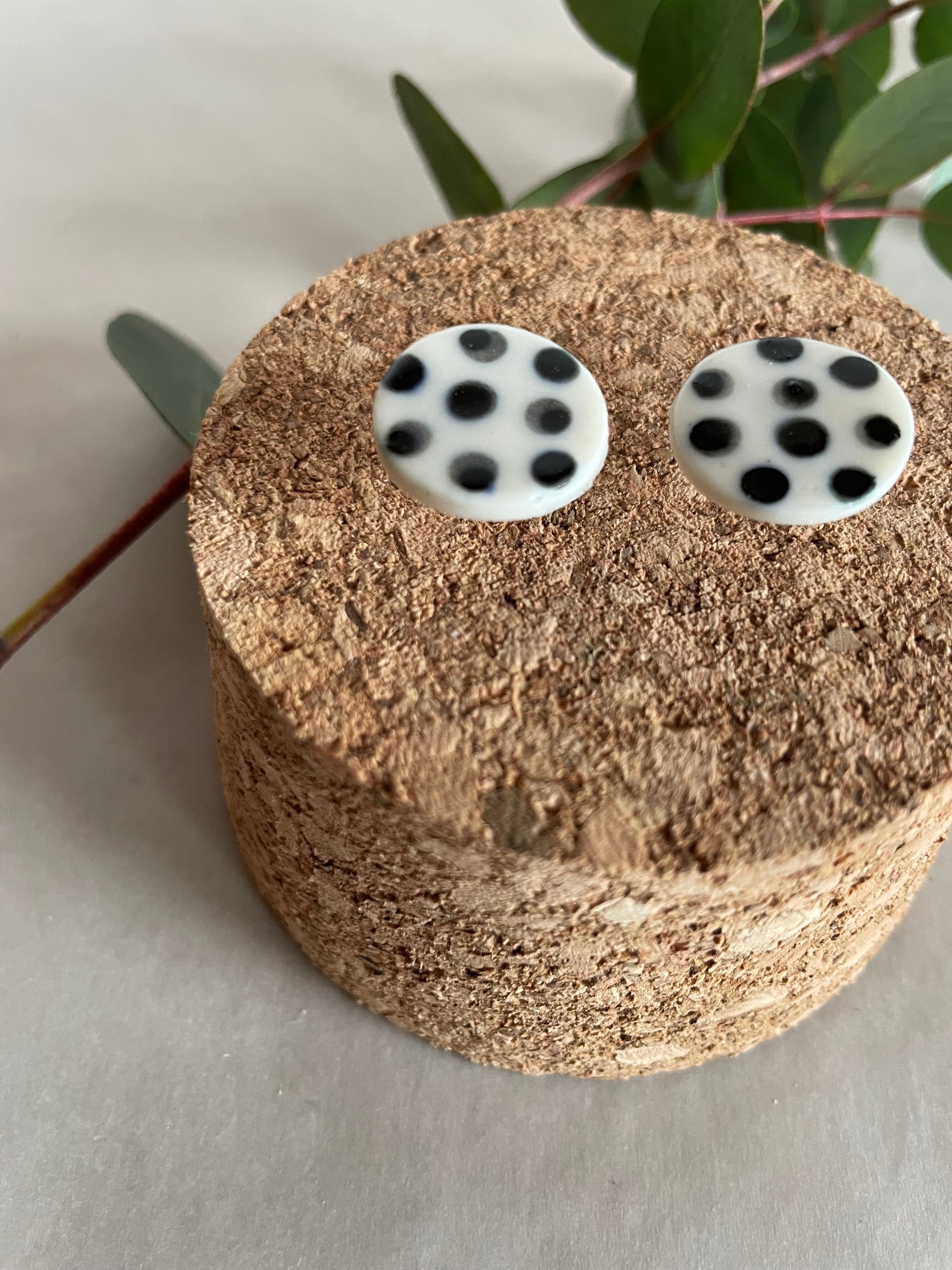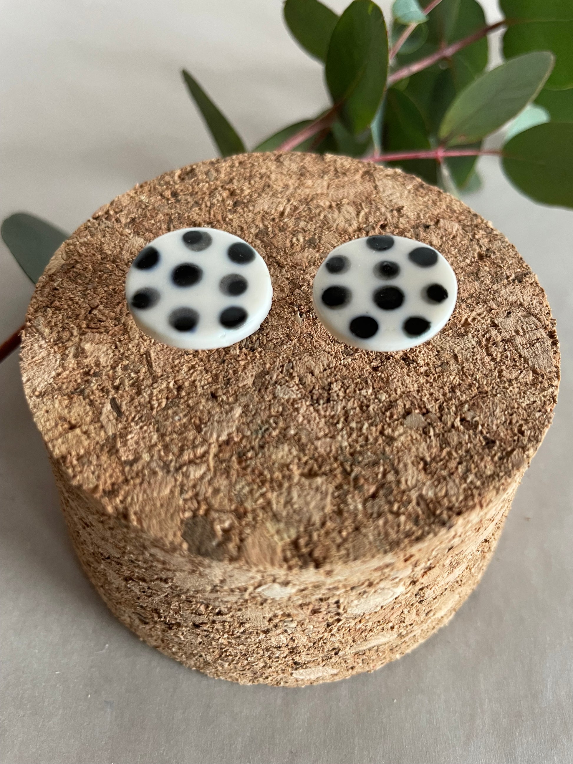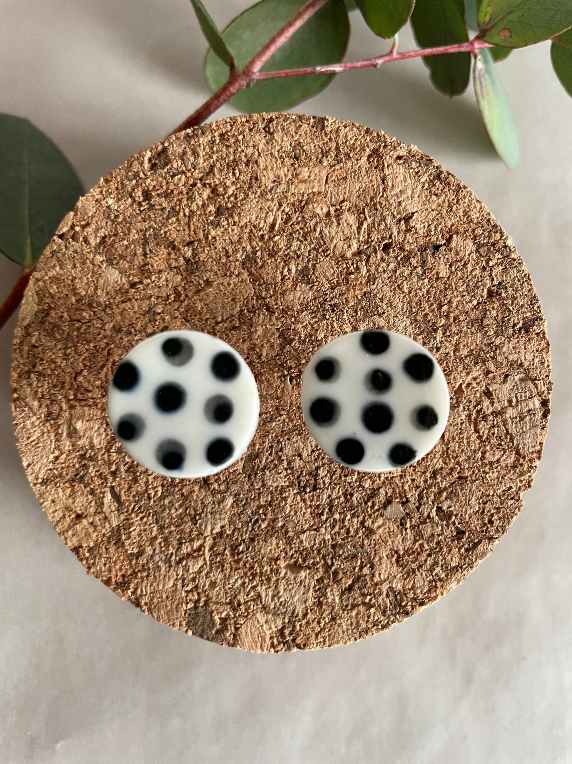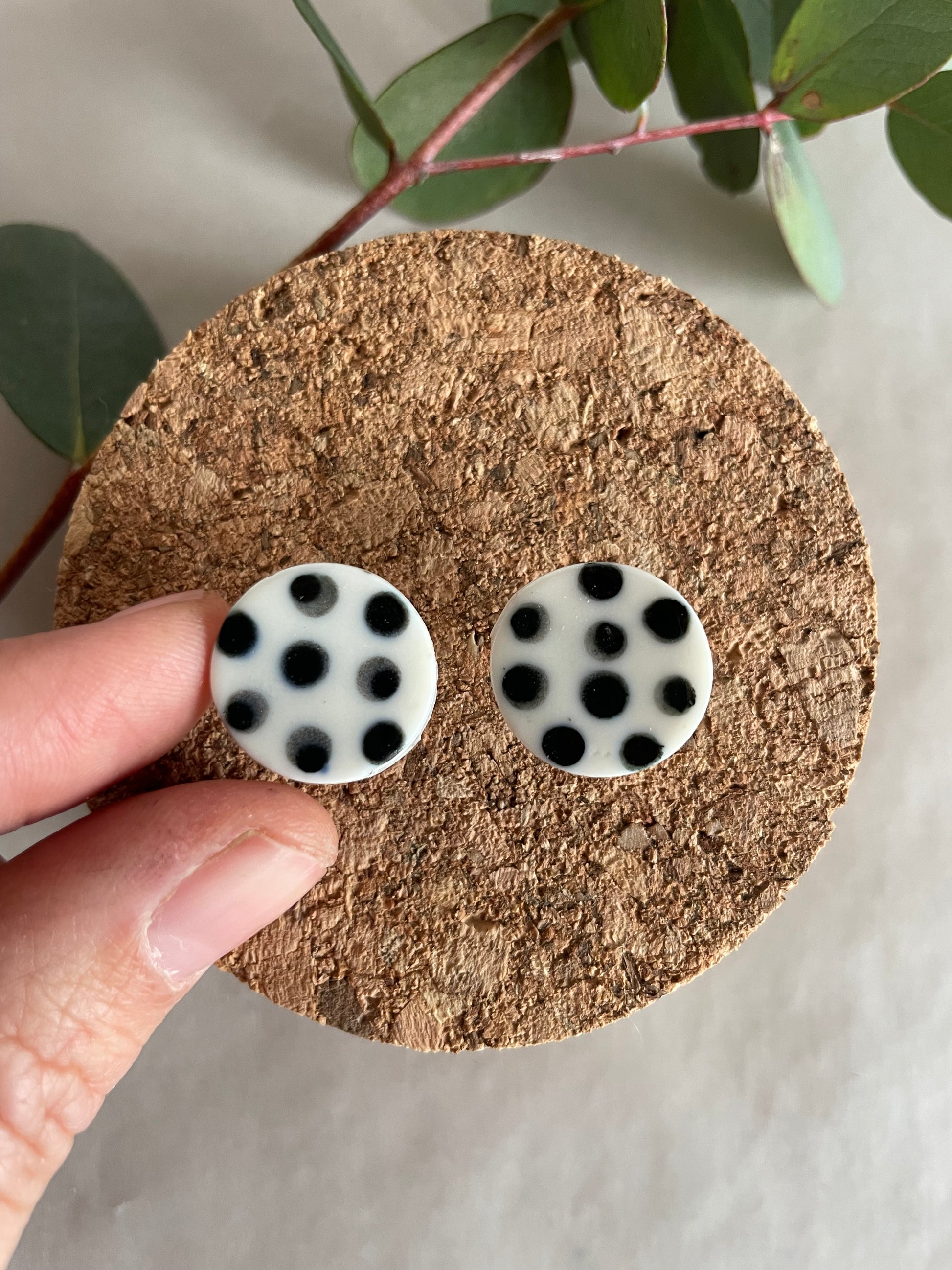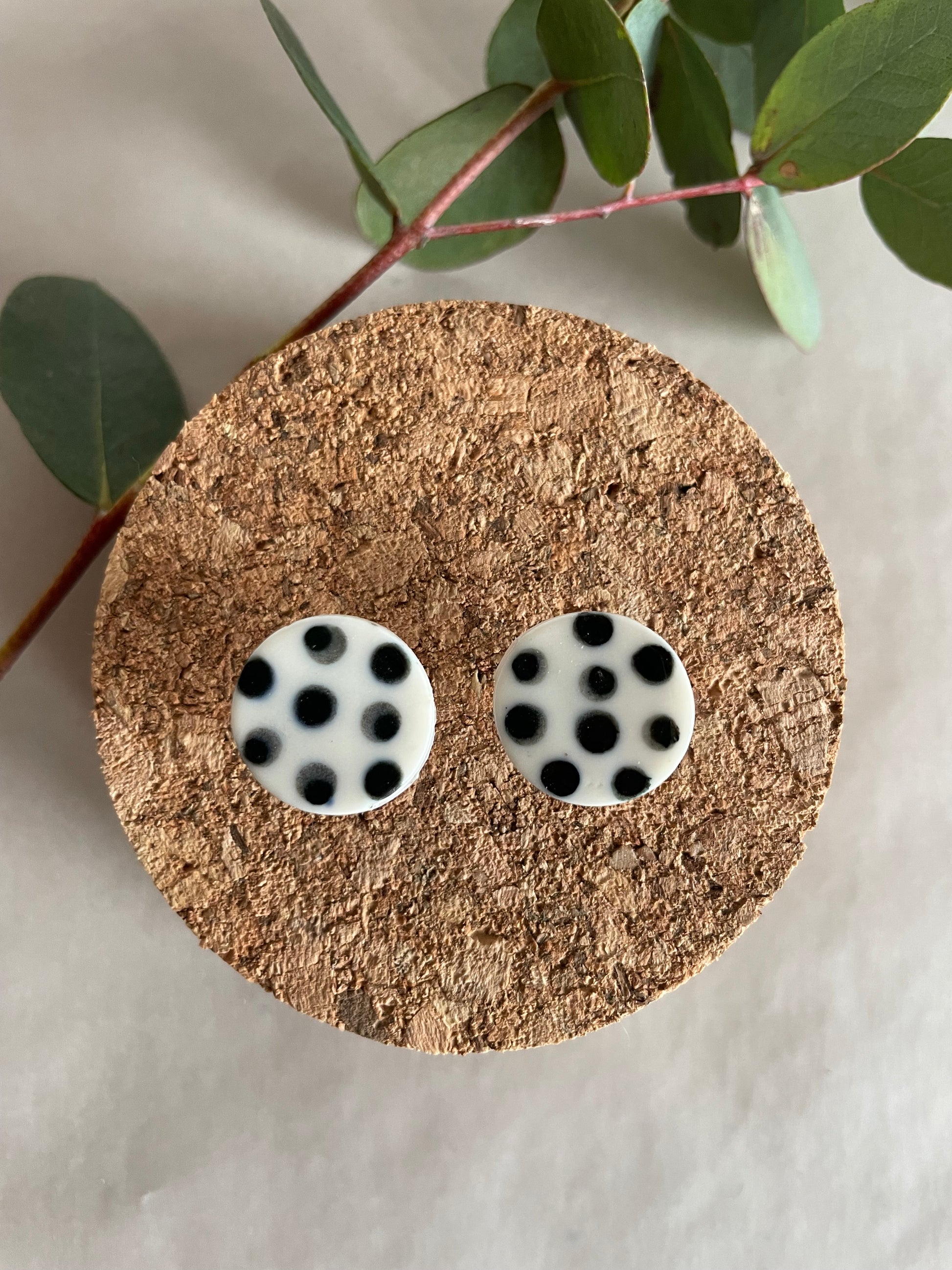 Orecchini basic porcellana e pois neri (grandi)