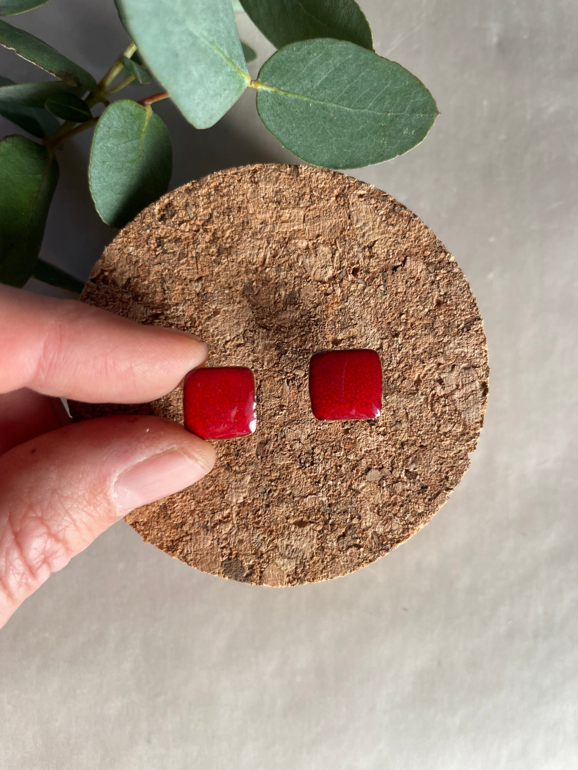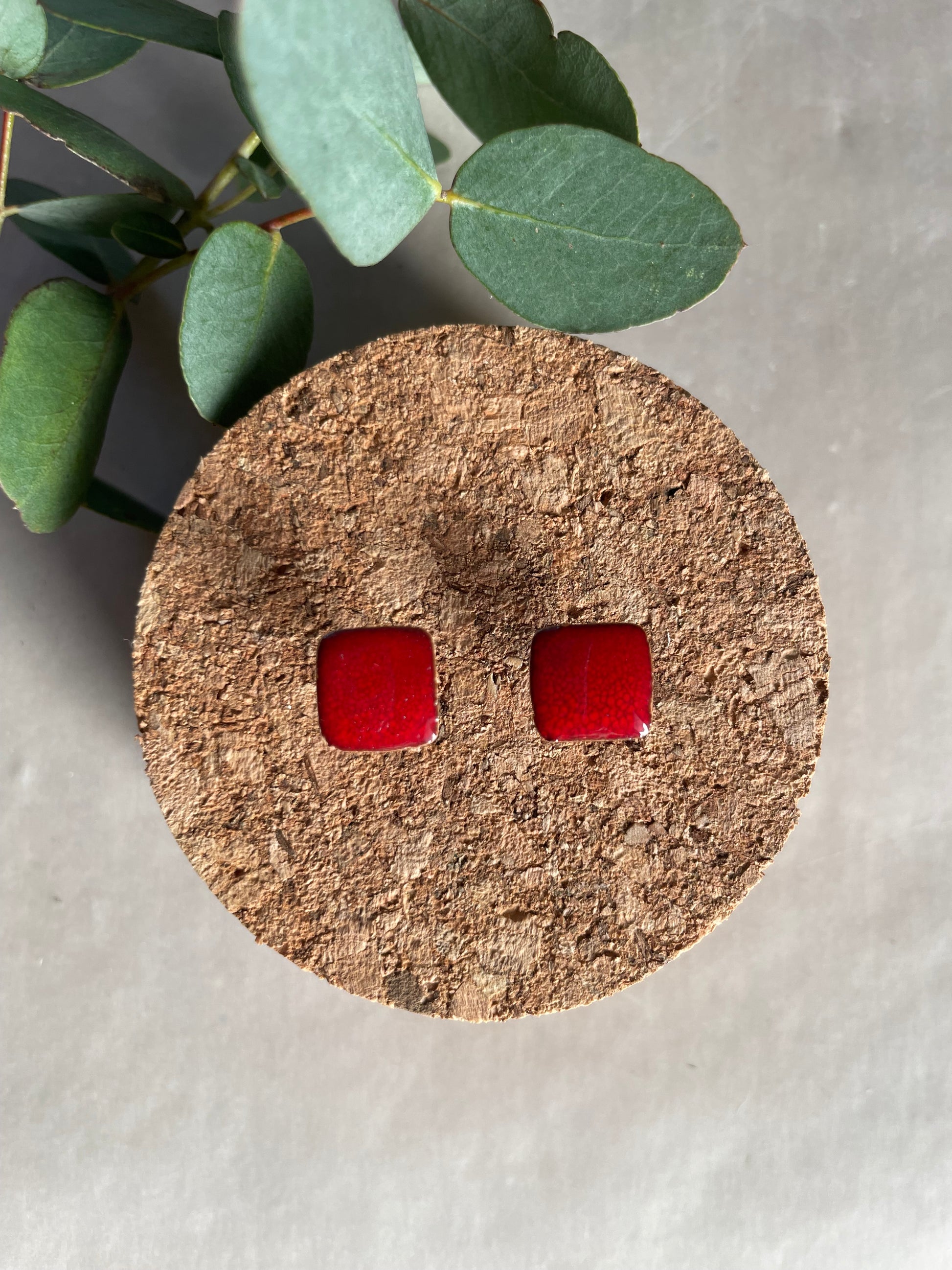 Questi orecchini sono perfetti per chi vuole indossare un gioiello comodo che aggiunge un tocco di unicità al proprio look. Sono fatti in terracotta lavorata a lastra e poi intagliata a mano; la finitura è smalto rosso ciliegia.