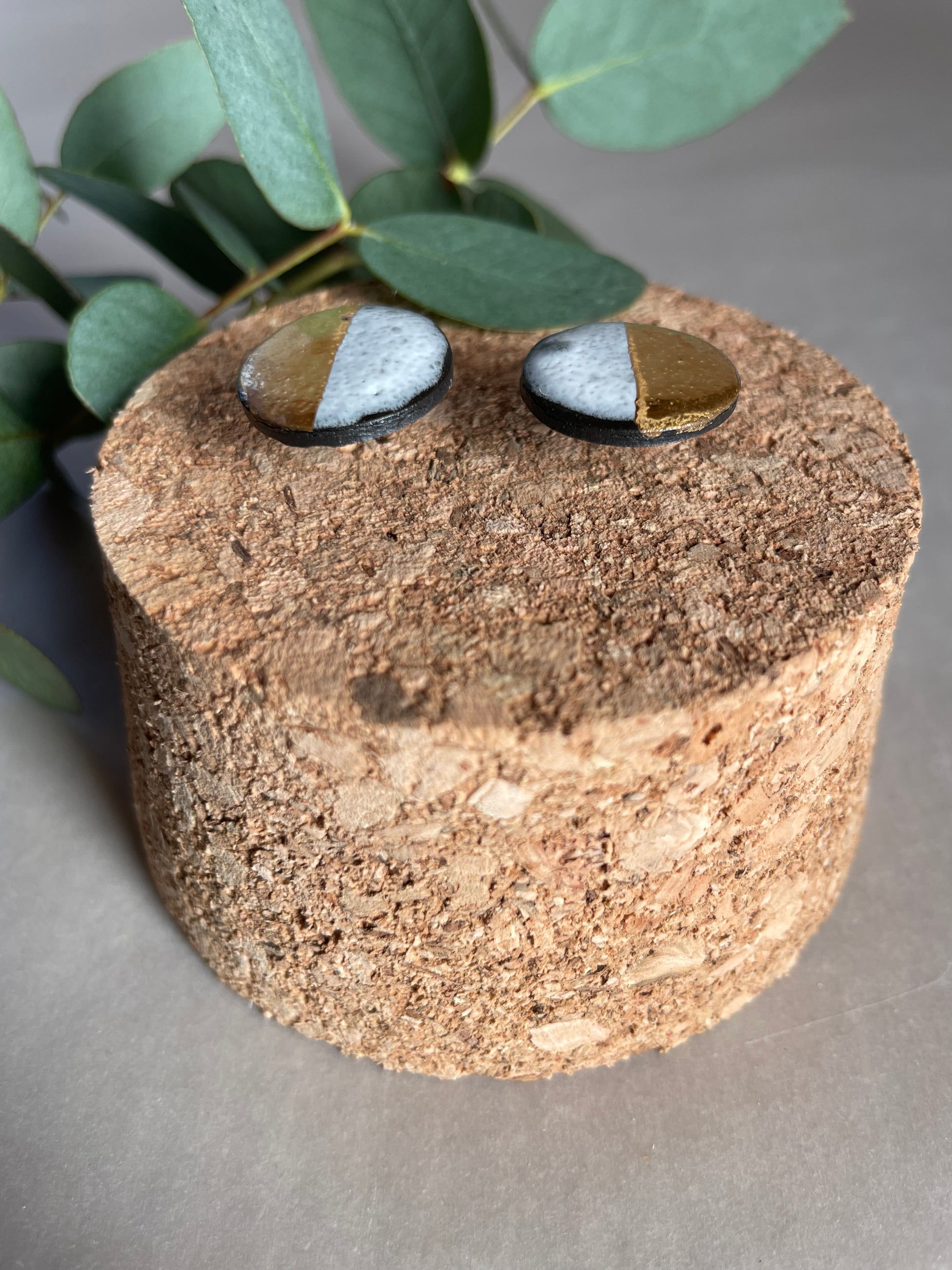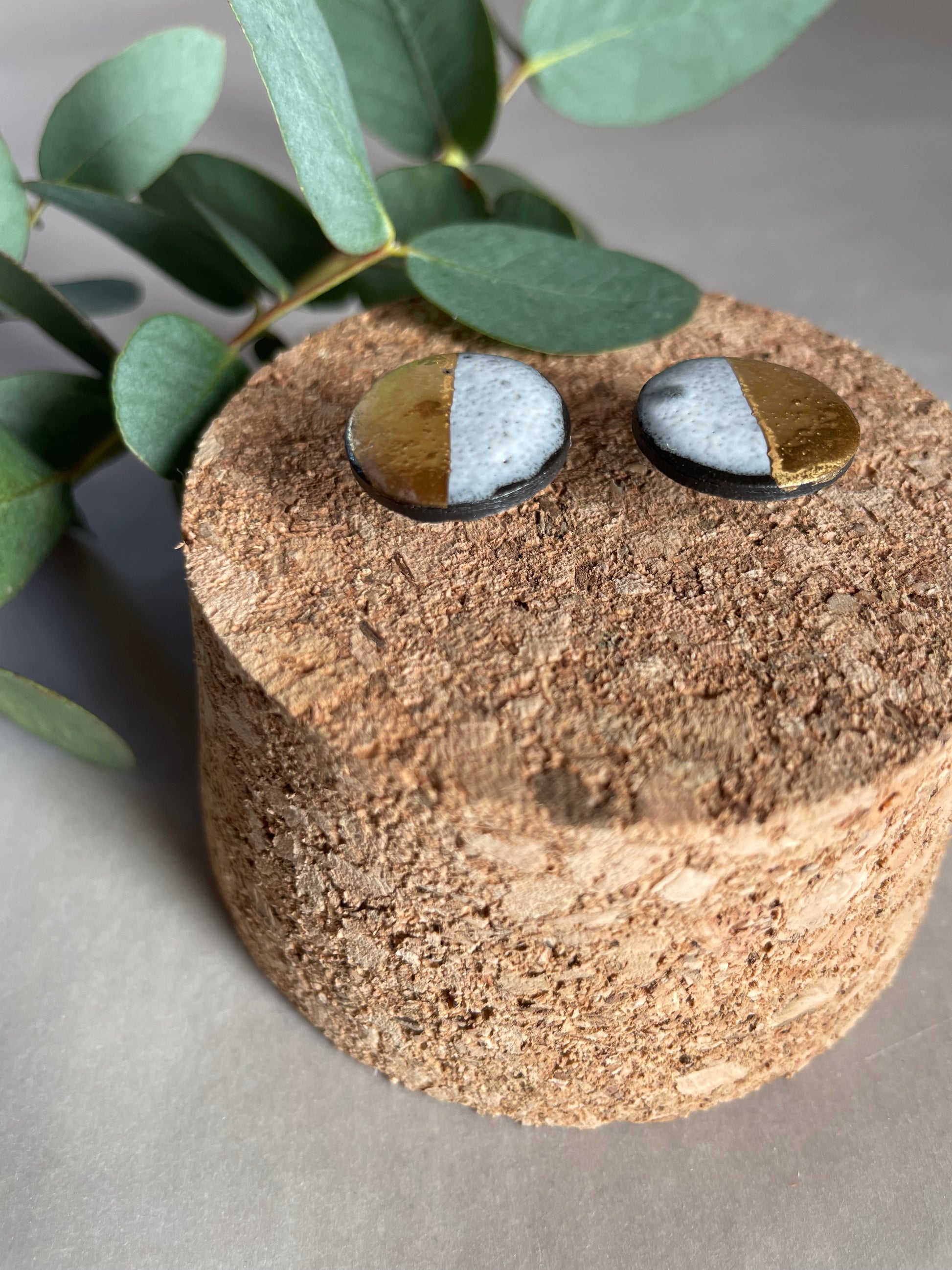 Orecchini “mezza luna” porcellana nera, bianco e oro