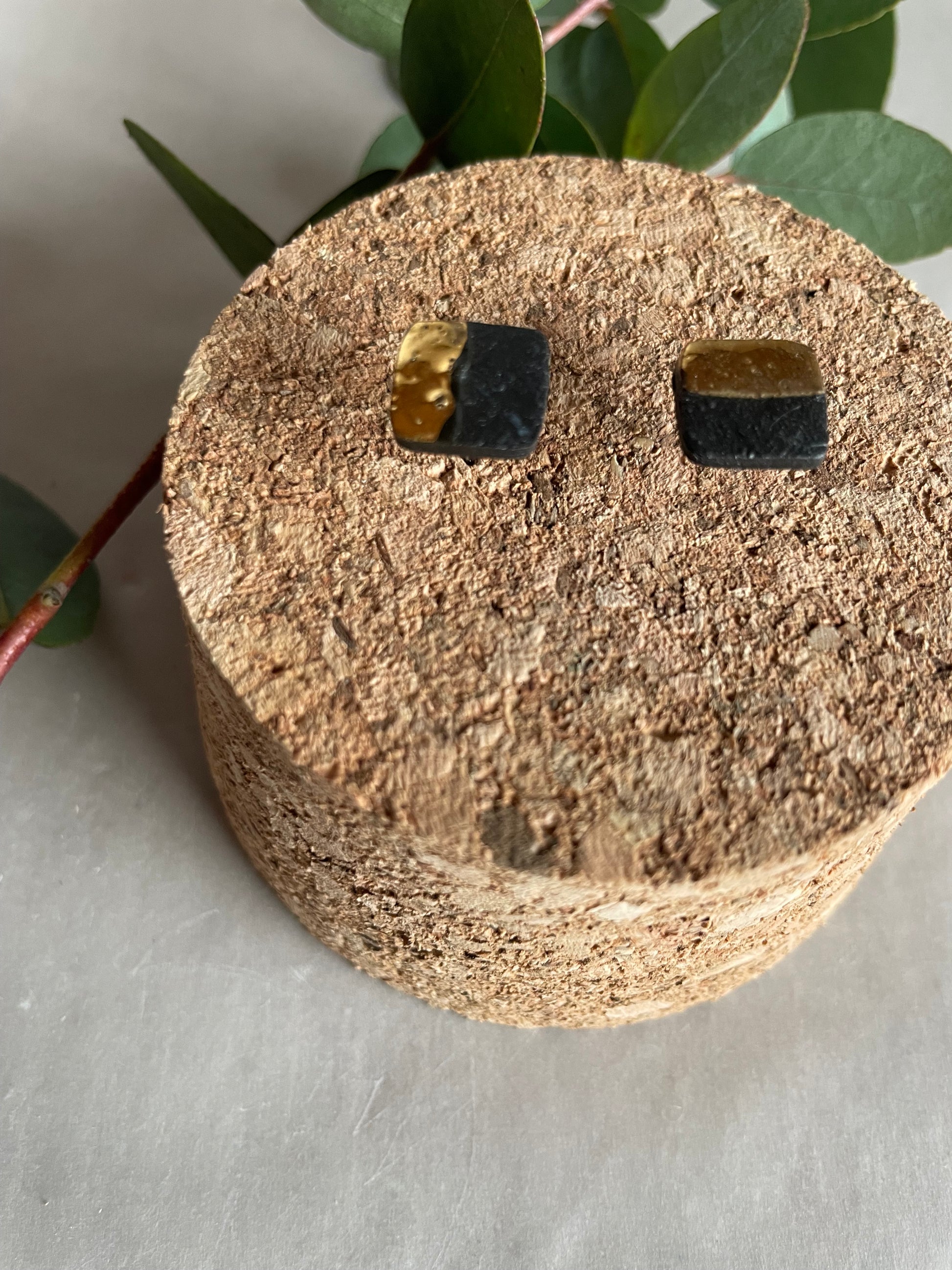 Orecchini “mezza luna” porcellana nera e oro(quadrati)