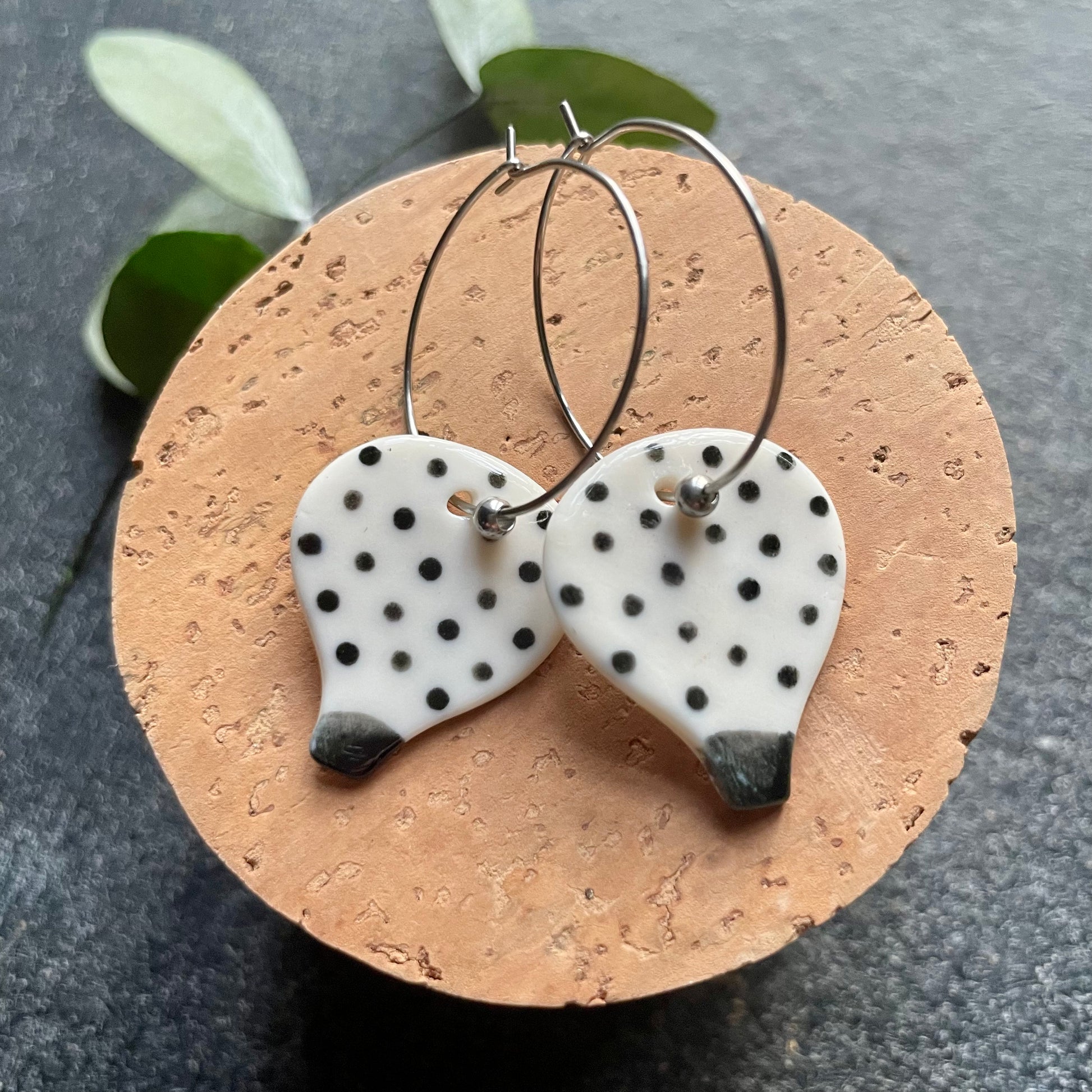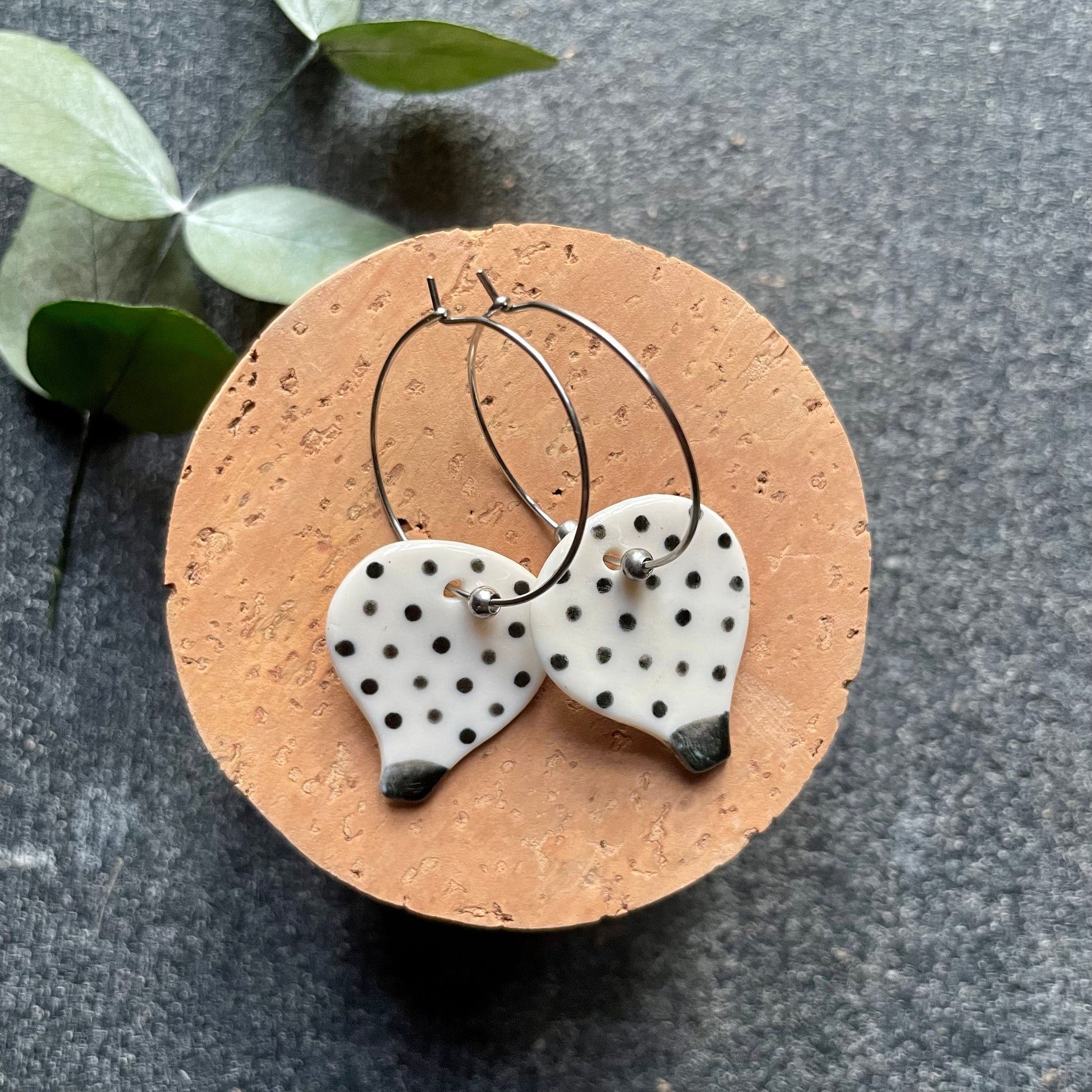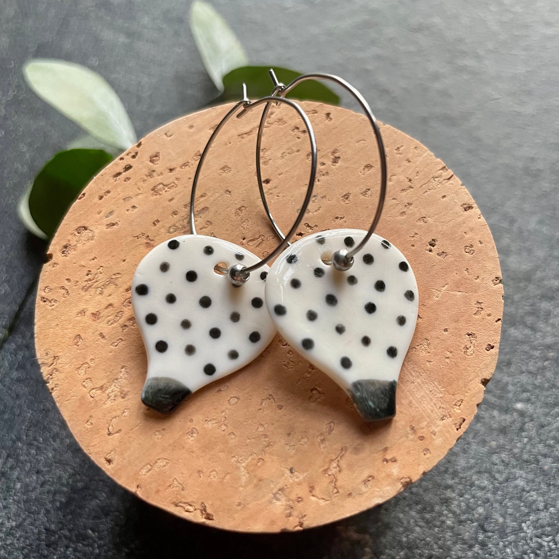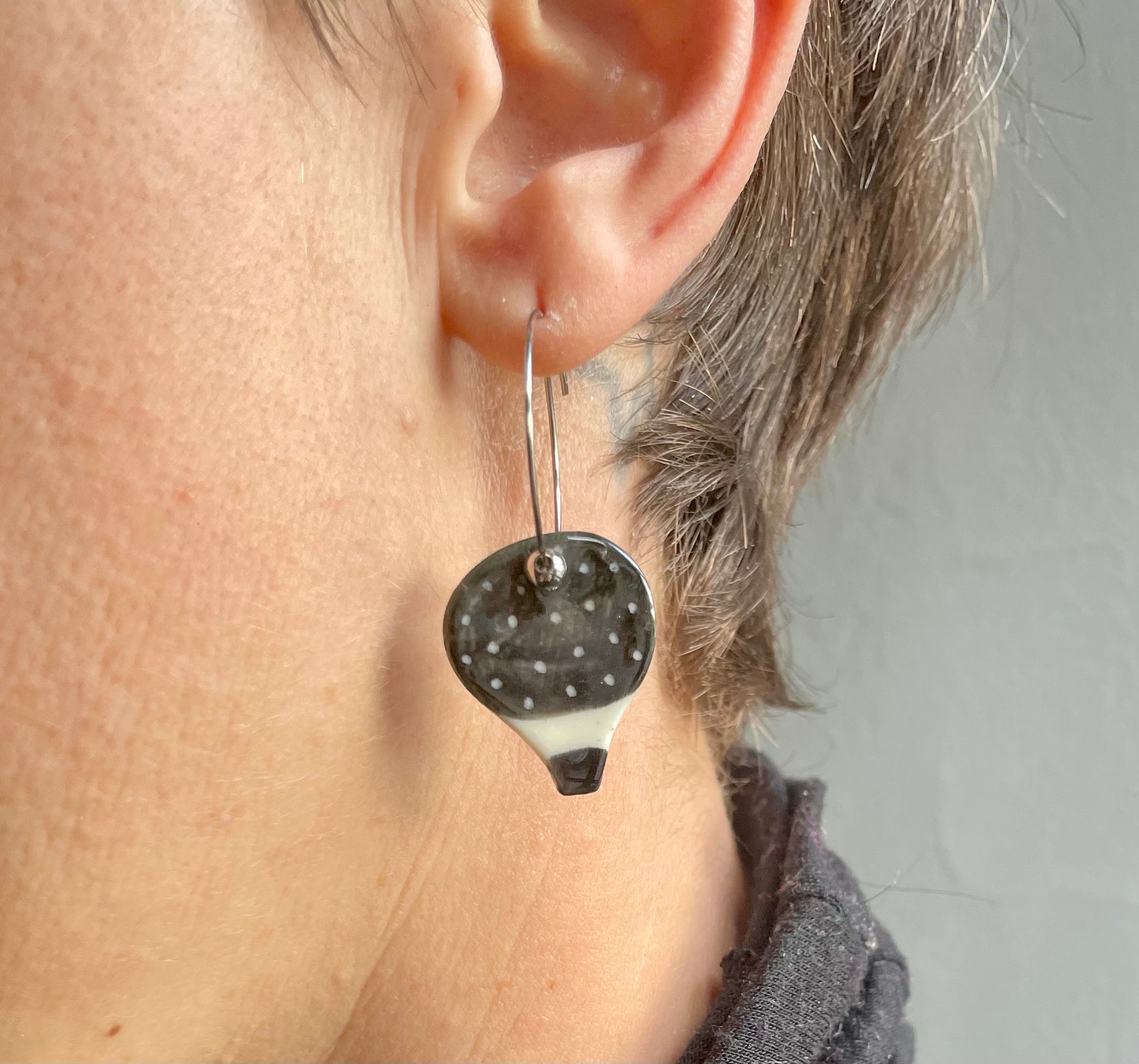 Orecchini mongolfiera pois, nero su bianco