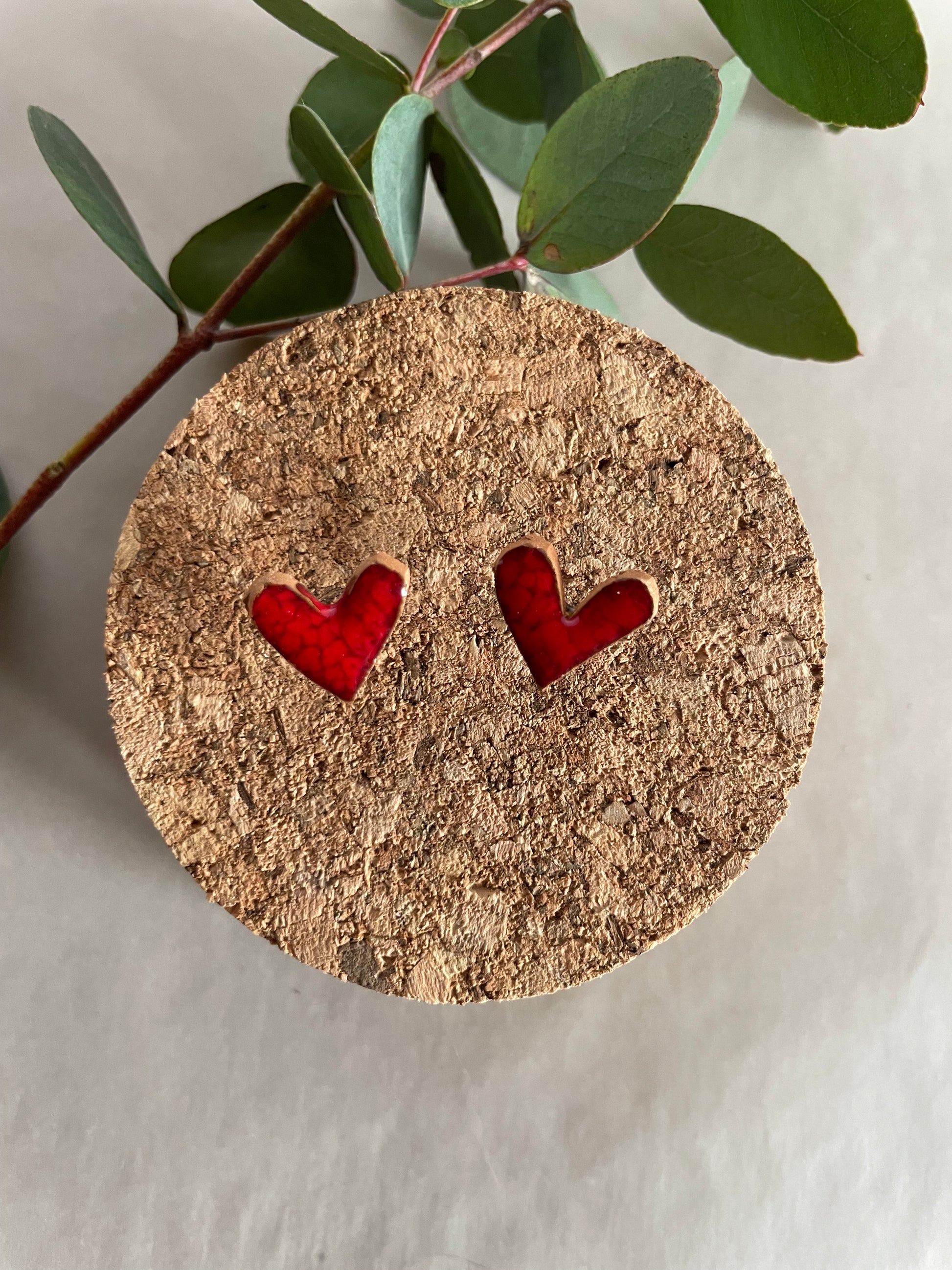 Materiale: terracotta rossa con smalto rosso ciliegia, supporto a perno in silicone anallergico. Misure: circa 1x0,8 cm.