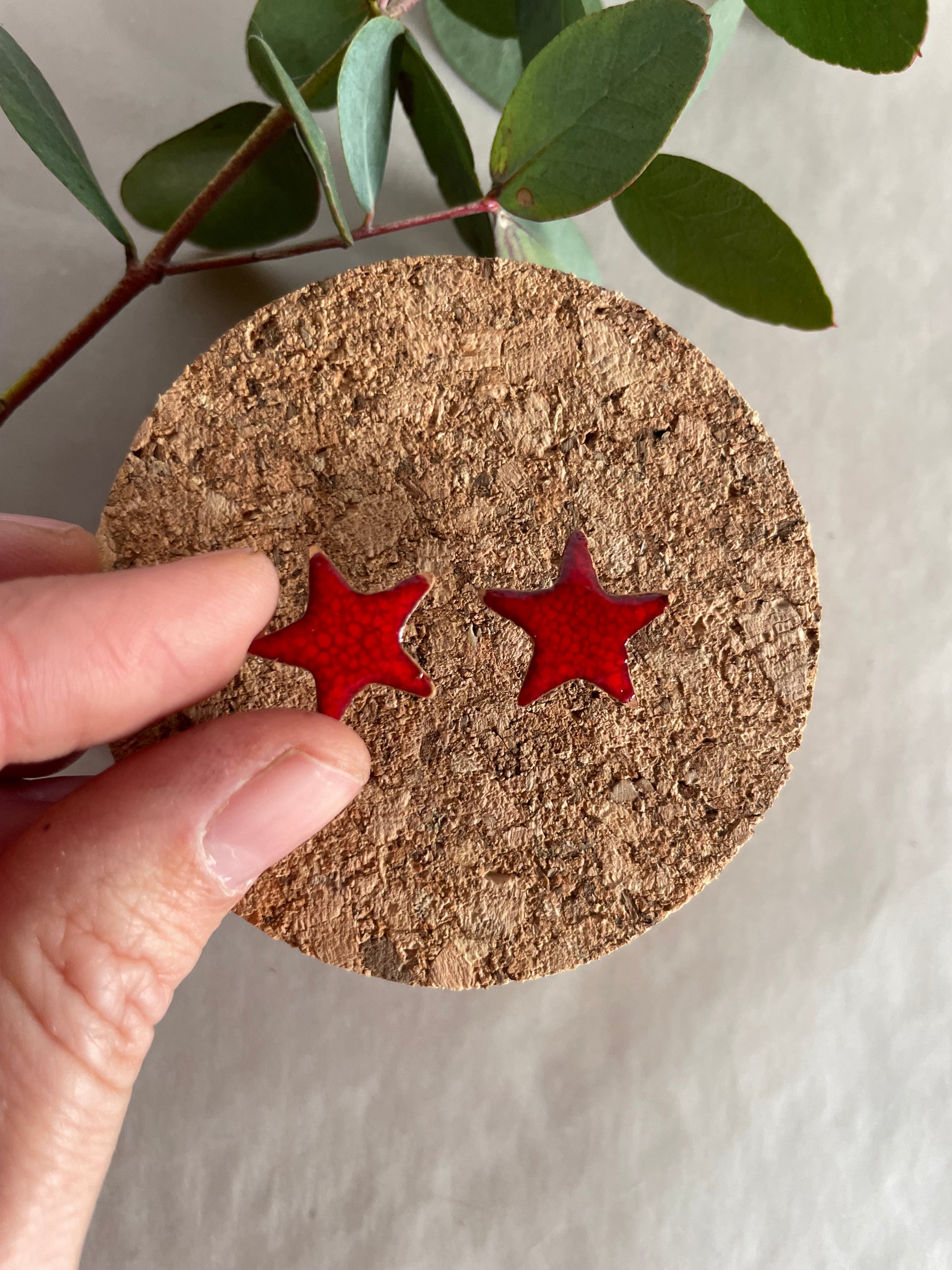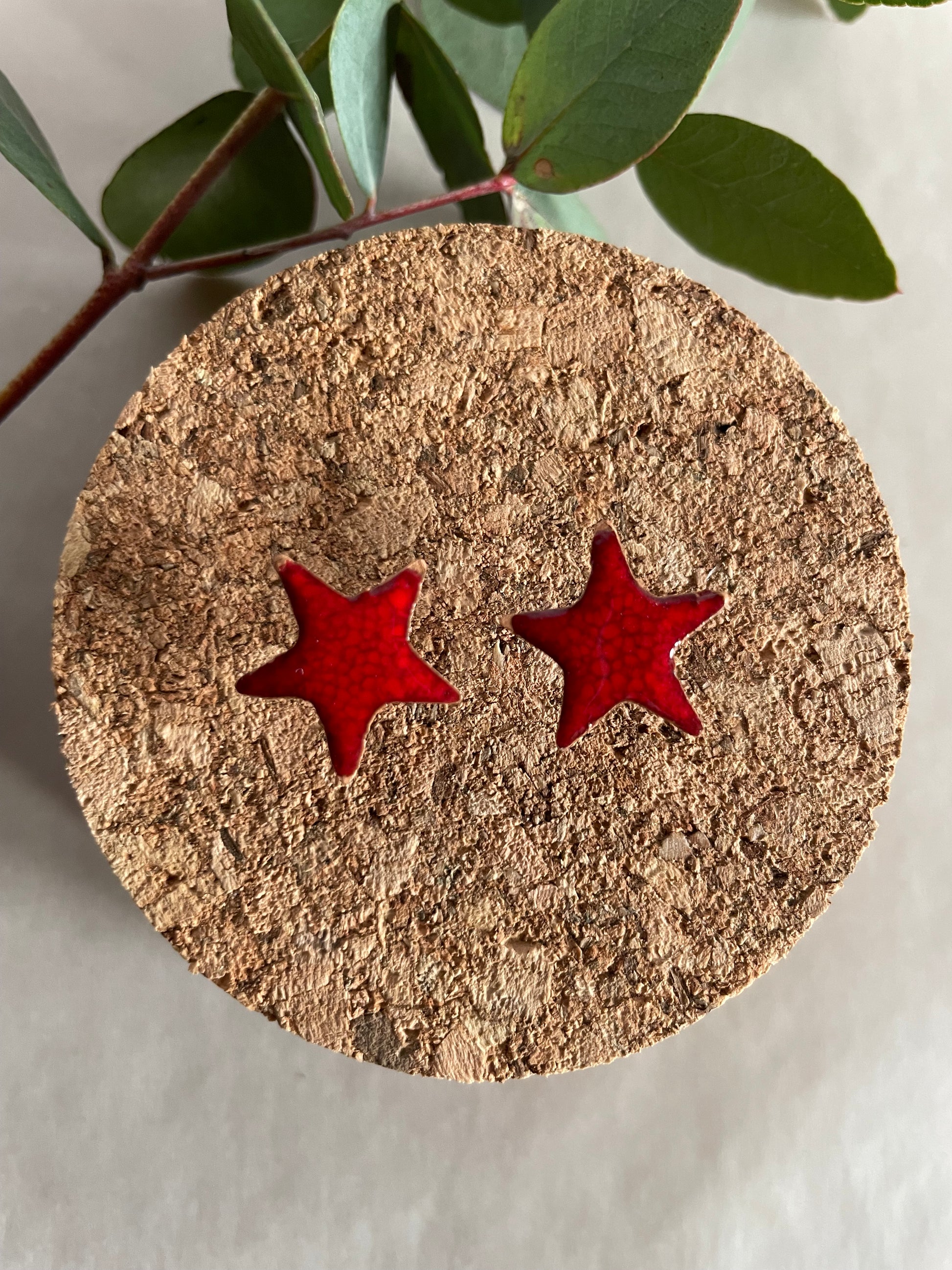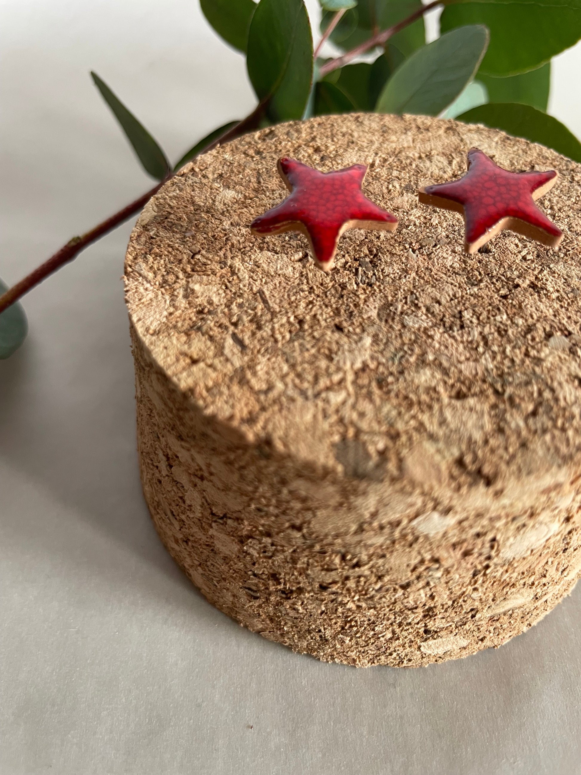 Materiale: terracotta rossa con smalto rosso ciliegia, supporto a perno in acciaio chirurgico anallergico. Misure: circa 1,2x1,2 cm