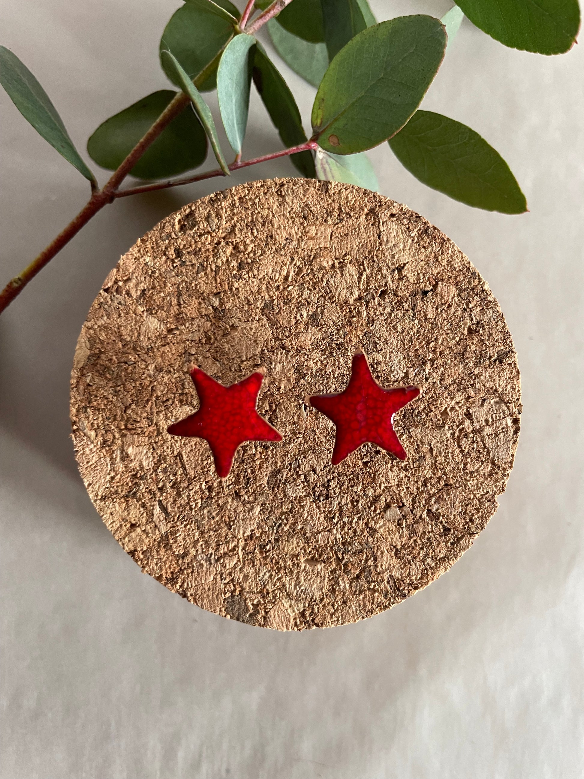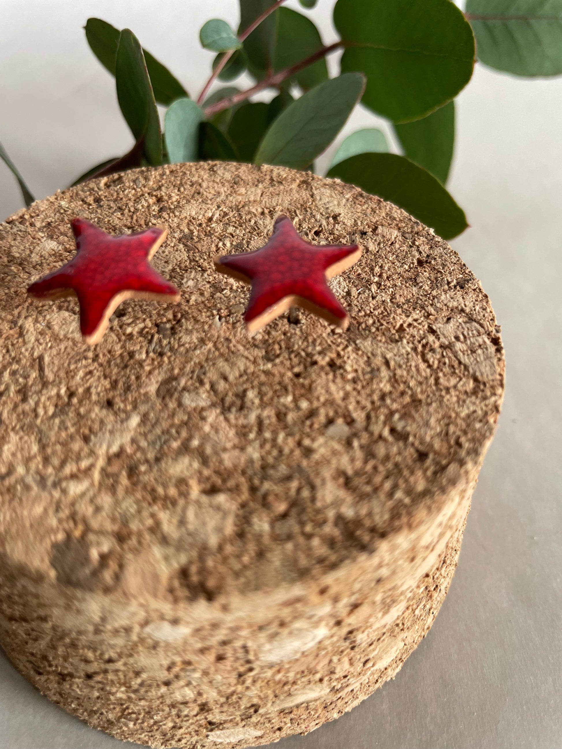 Questi orecchini sono perfetti per chi vuole indossare un gioiello comodo che aggiunge un tocco di colore al proprio look. Sono fatti in terracotta lavorata a lastra e poi intagliata a mano libera; la finitura è ottenuta per mezzo di smalto color rosso ciliegia.