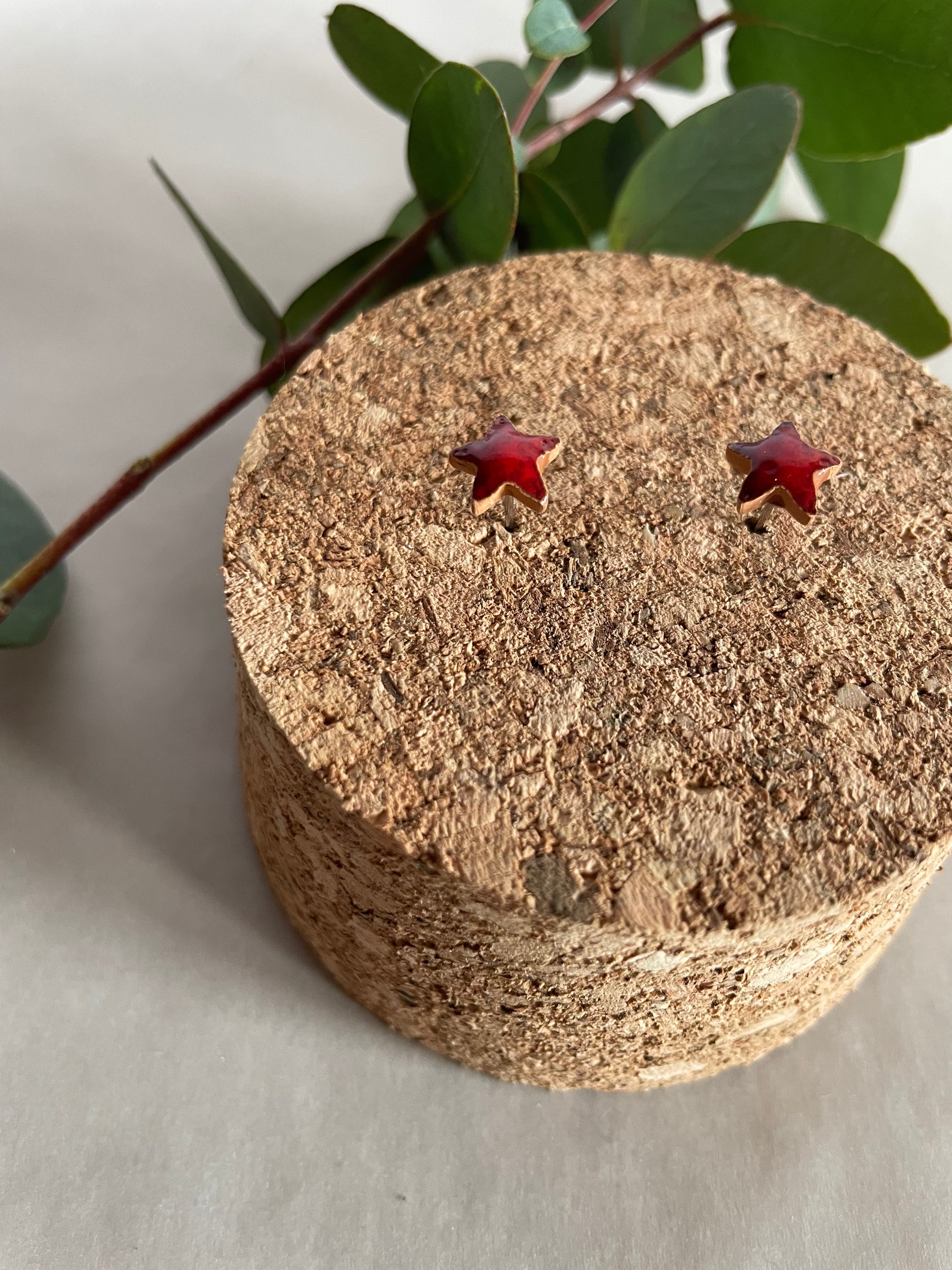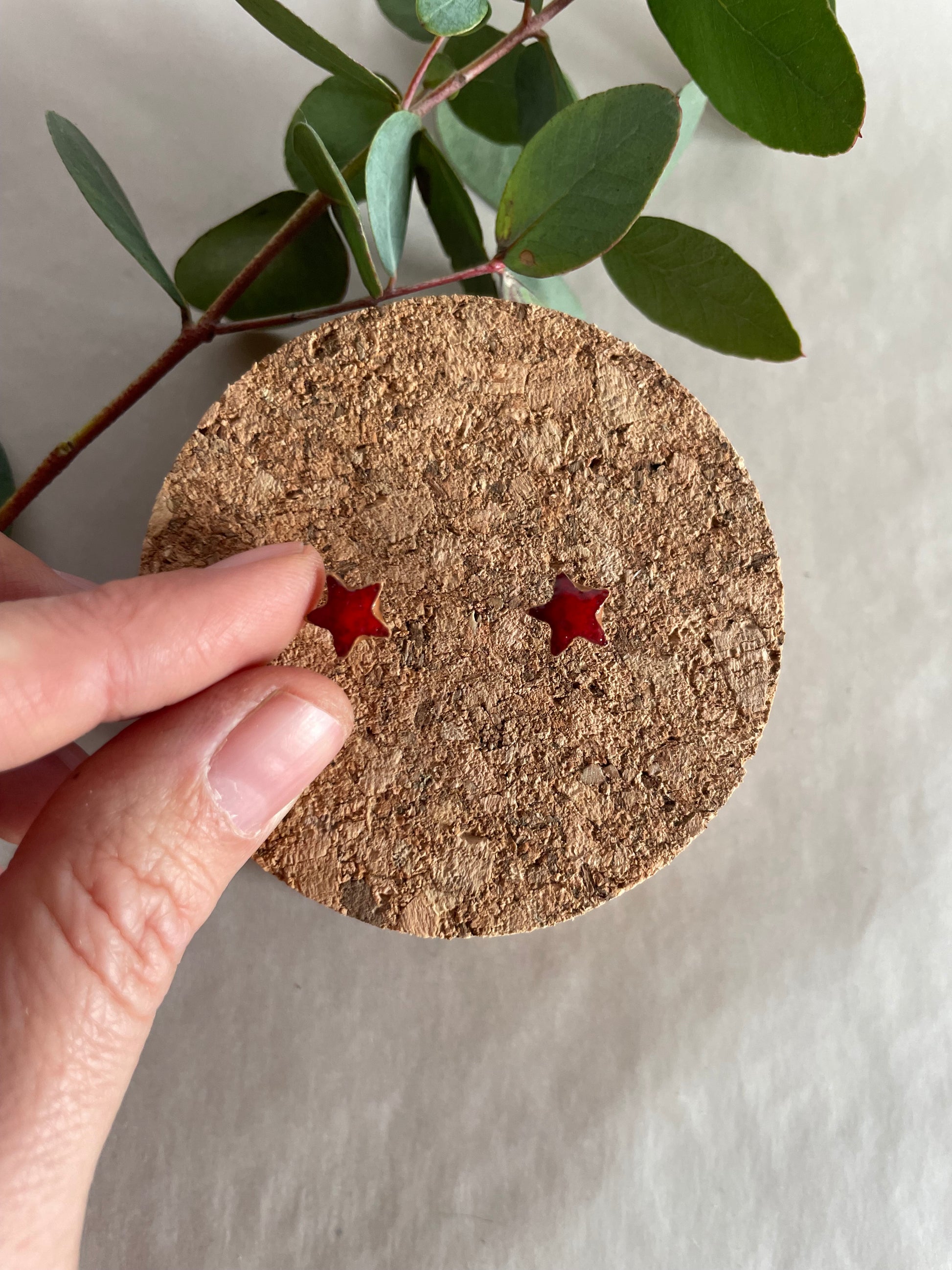 Questi orecchini sono perfetti per chi vuole indossare un gioiello comodo che aggiunge un tocco di colore al proprio look. Sono fatti in terracotta lavorata a lastra e poi intagliata a mano libera; la finitura è ottenuta per mezzo di smalto color rosso ciliegia.