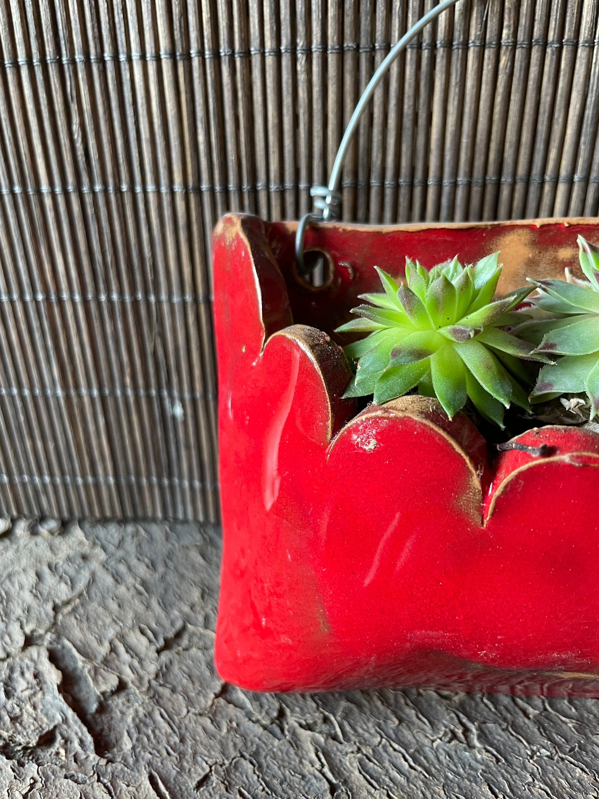 Materiali: terracotta, smalto rosso, filo di ferro zincato.